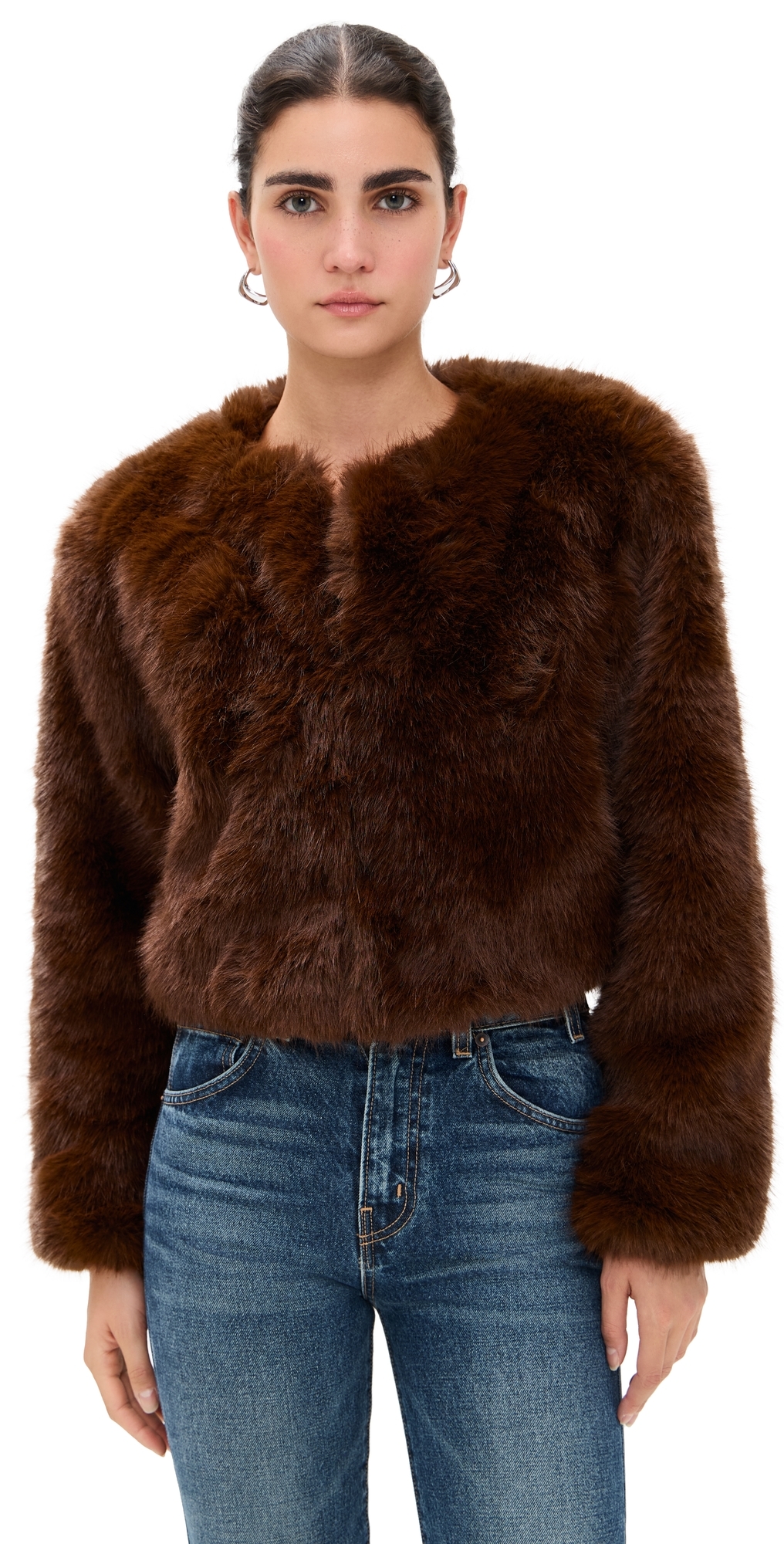 Fabric: Mid-weight, low-stretch faux fur. Crew neck. Long sleeves. Hook-and-eye placket. On-seam side pockets. Shell: 100% polyester. Lined. Lining: 97% polyester/3% spandex. Dry clean. Imported, China. Measurements: Measurements from size S Length: 16.5in / 42.0cm, from shoulder
