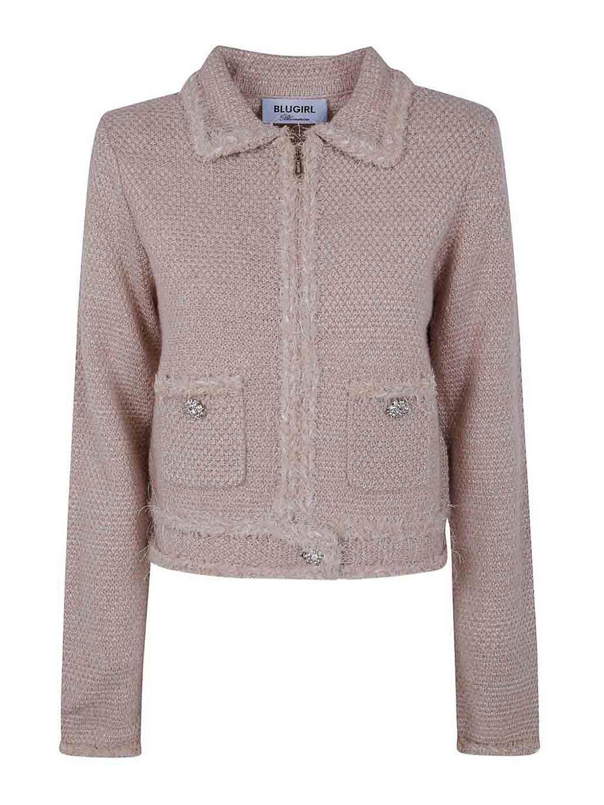 Cardigan zippé en tweed rose Blugirl avec ornements