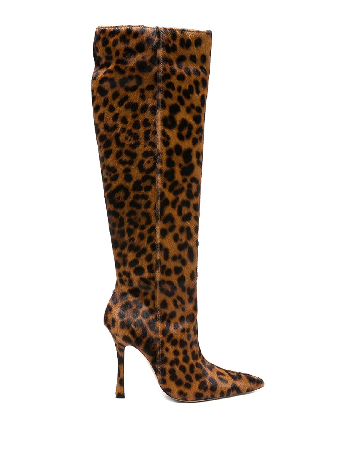 Fermeture à glissière à tige haute à bout pointu à imprimé léopard marron