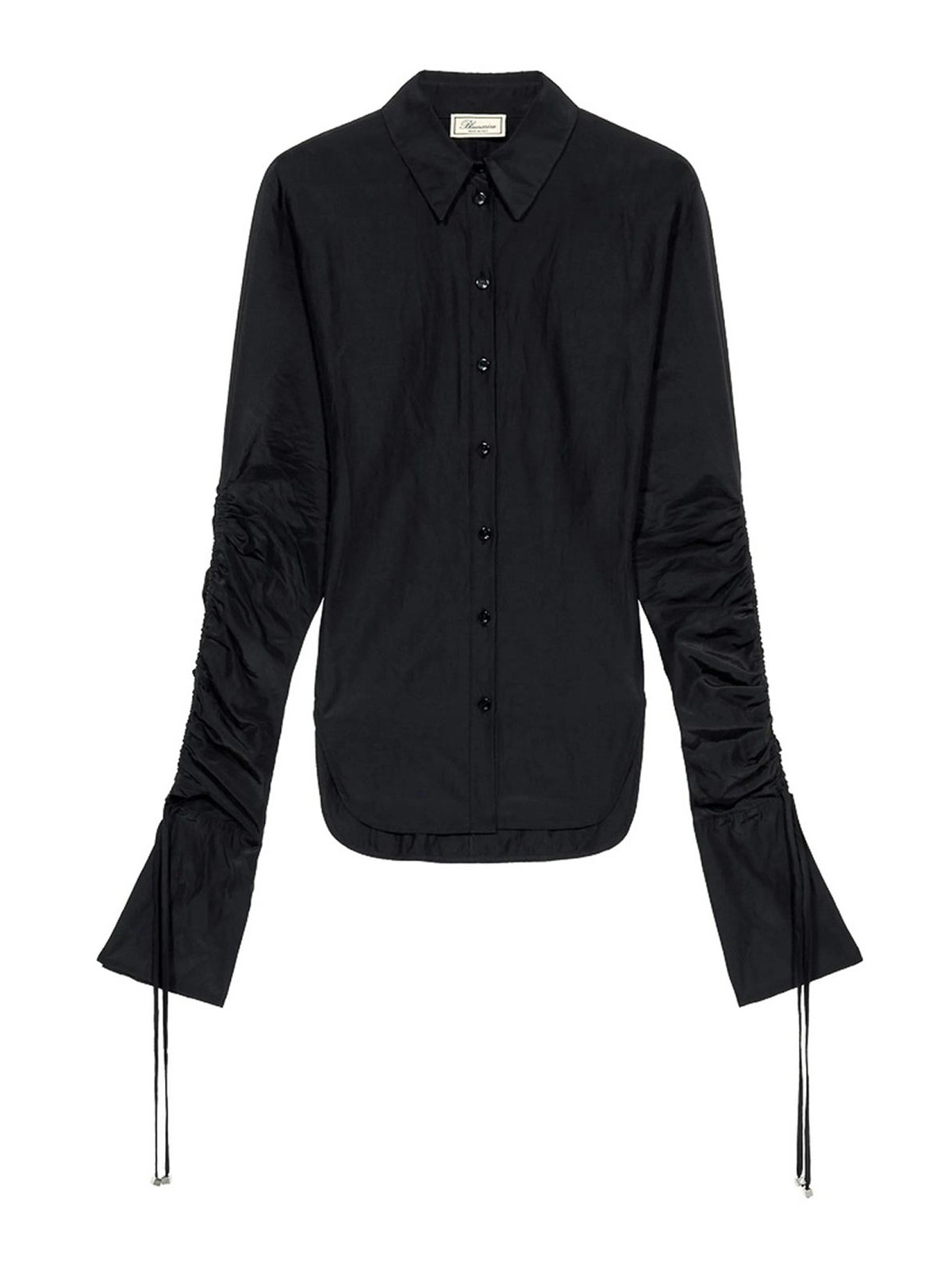 Manches froncées noires, taille cintrée, fermeture boutonnée, manches longues, poignets à cordon