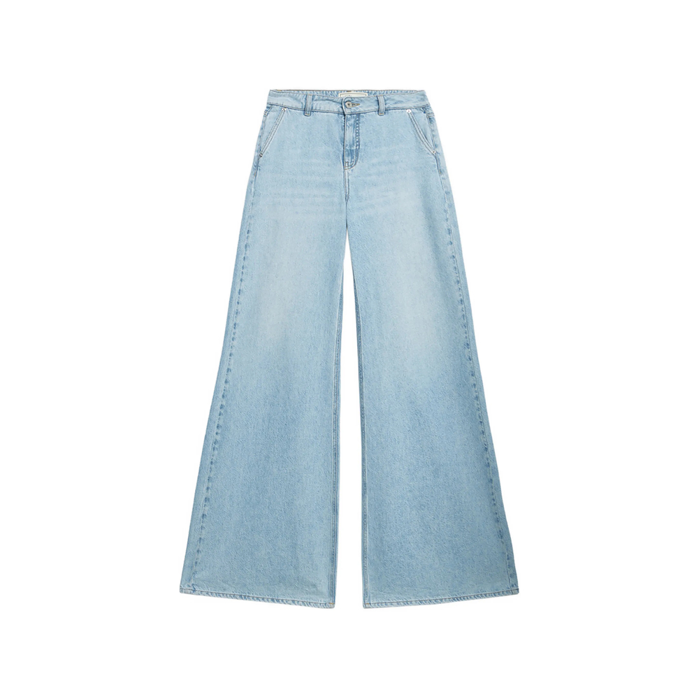 light blue denim effect wide leg pockets belt loops