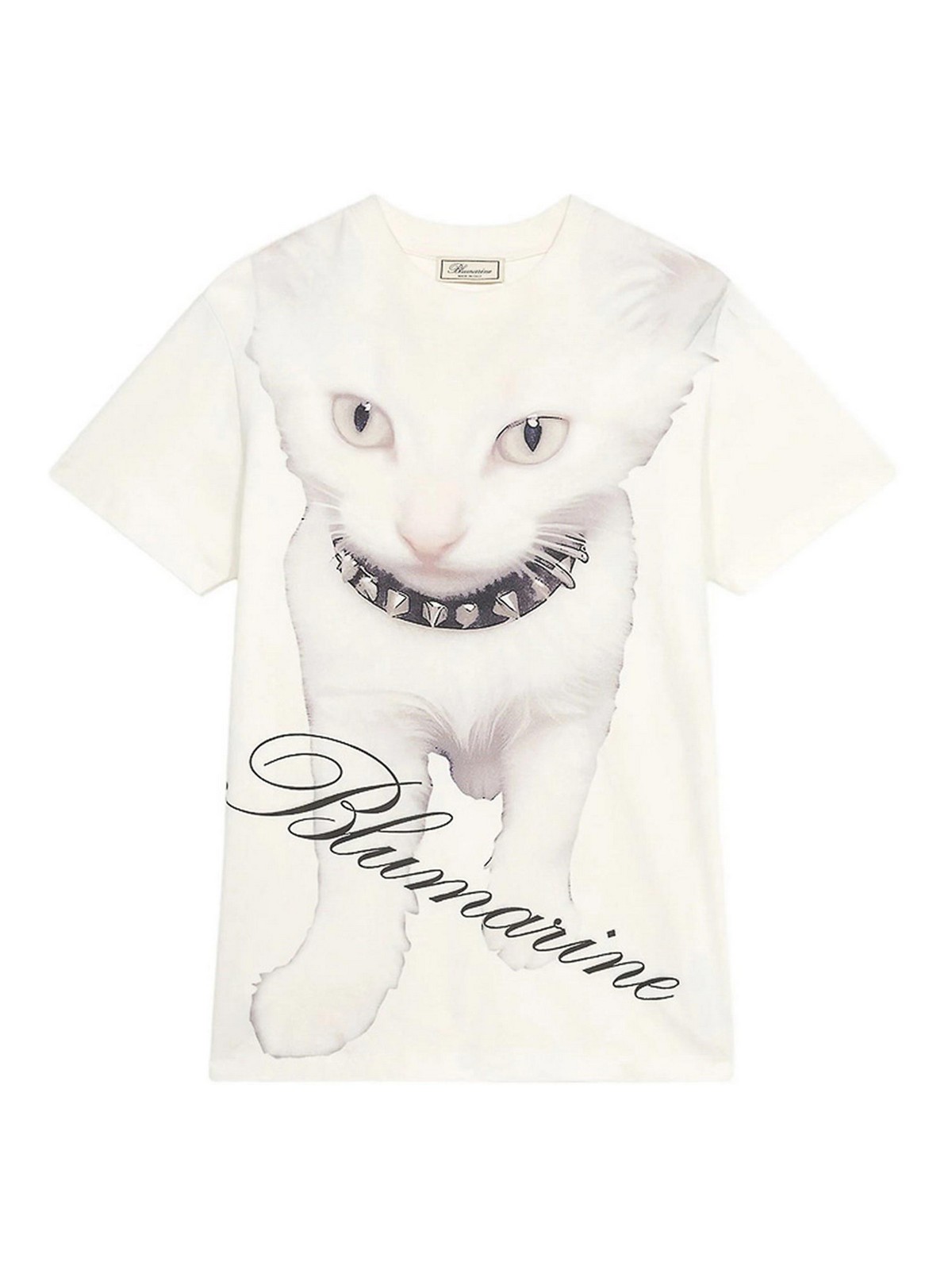 Logo avec illustration de chat blanc et lettrage à manches courtes