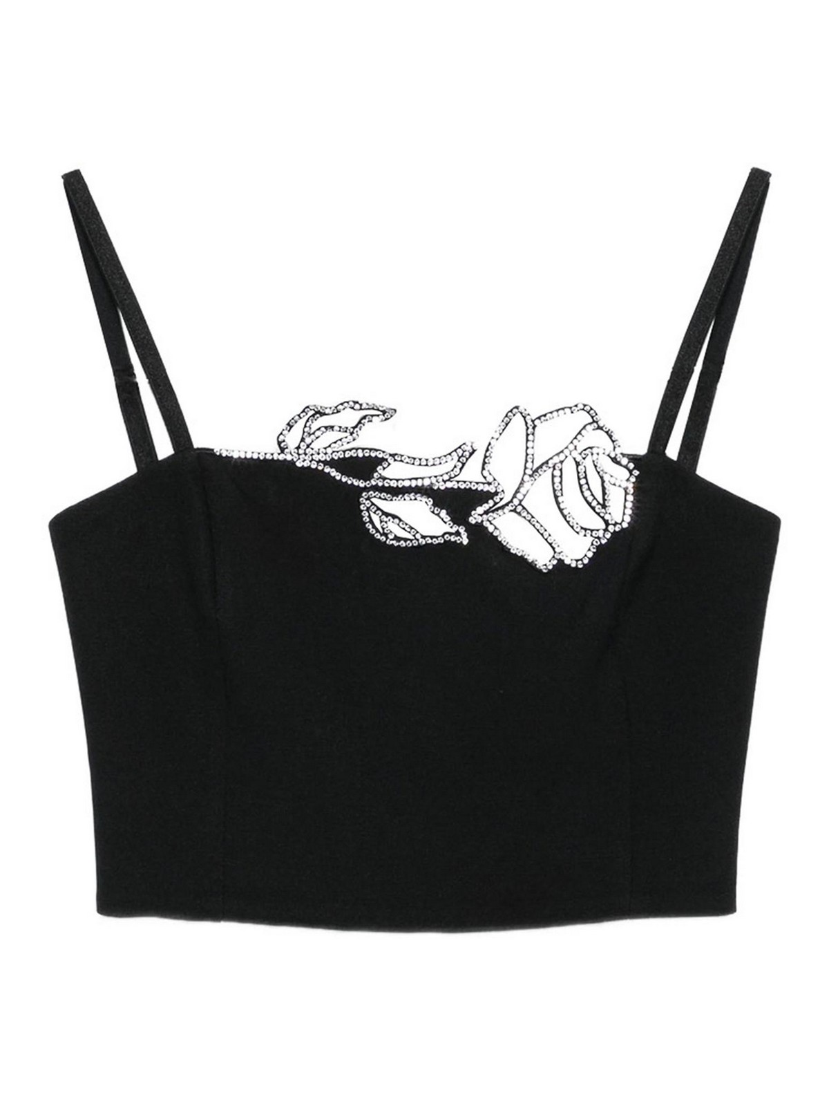 Bretelles spaghetti noires ornées de roses et ourlet droit