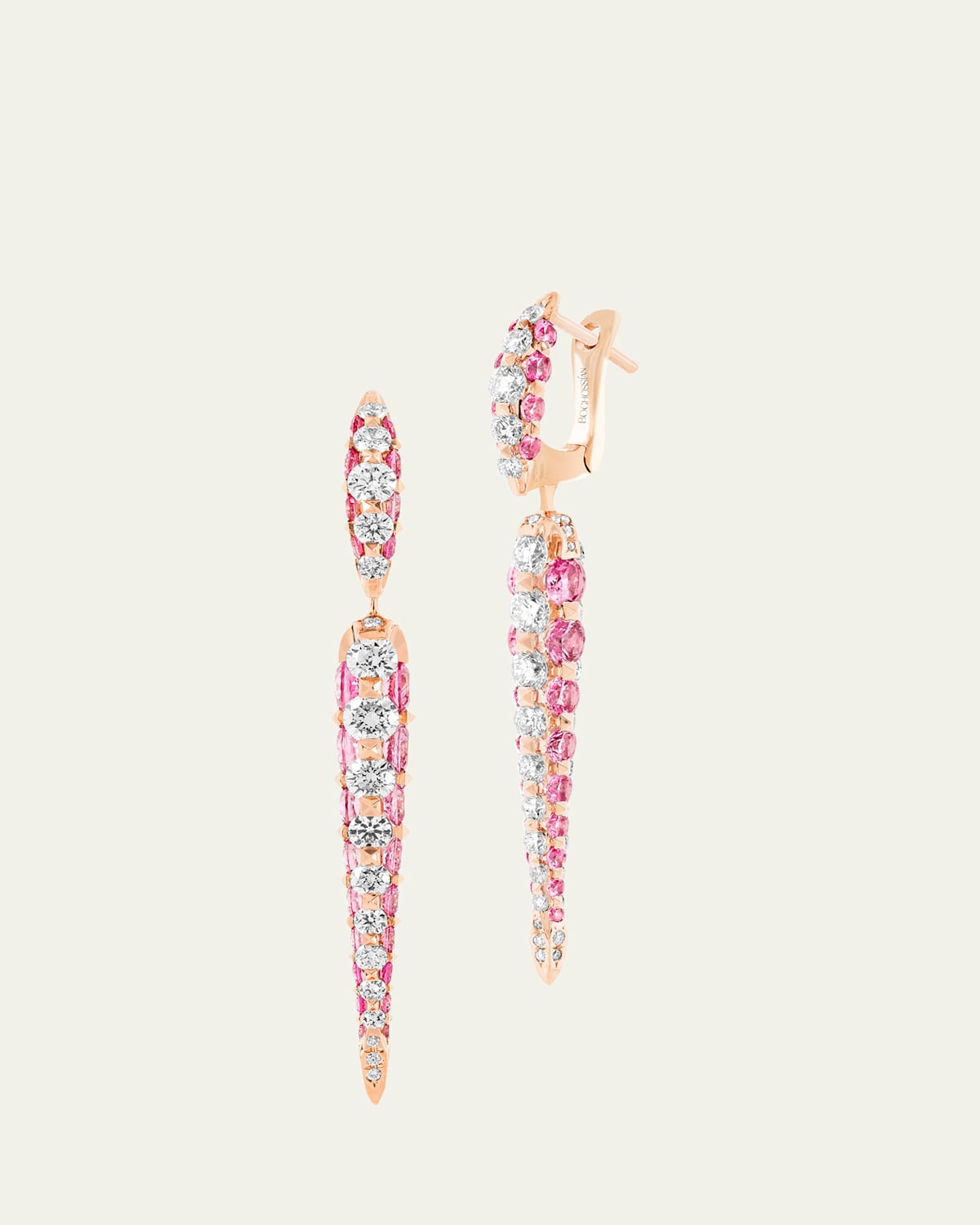 Boghassian drop earrings 18karat rose gold Roundshaped pink sapphire gemstones; 2.89 total carat weight Small brilliantcut diamonds; 2.33 total carat weight For pierced ears Made in Switzerland