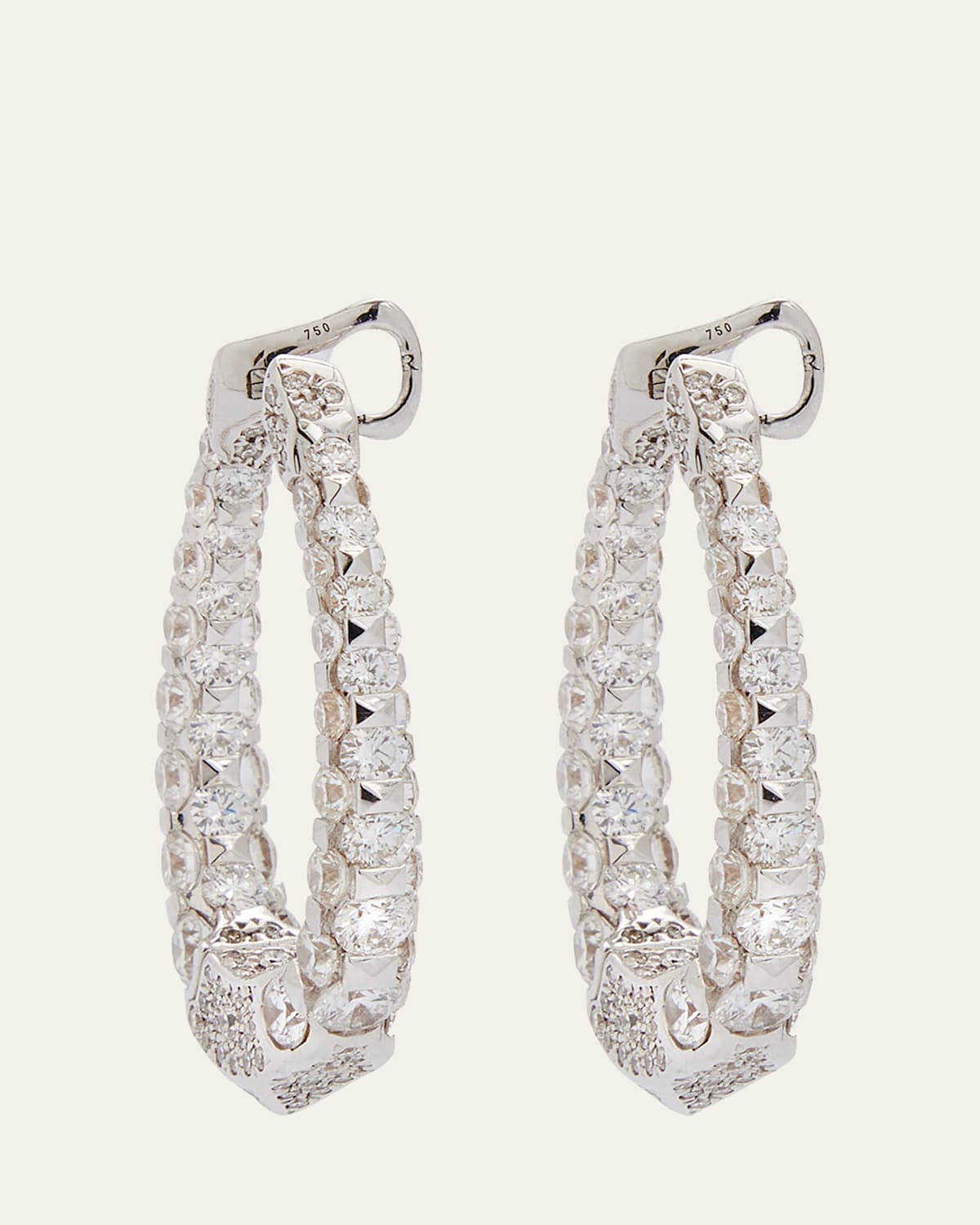 Boghossian earrings 18karat white gold Round brilliant diamonds Total carat weight: 5.43 Snapback closure For pierced ears Made in Switzerland