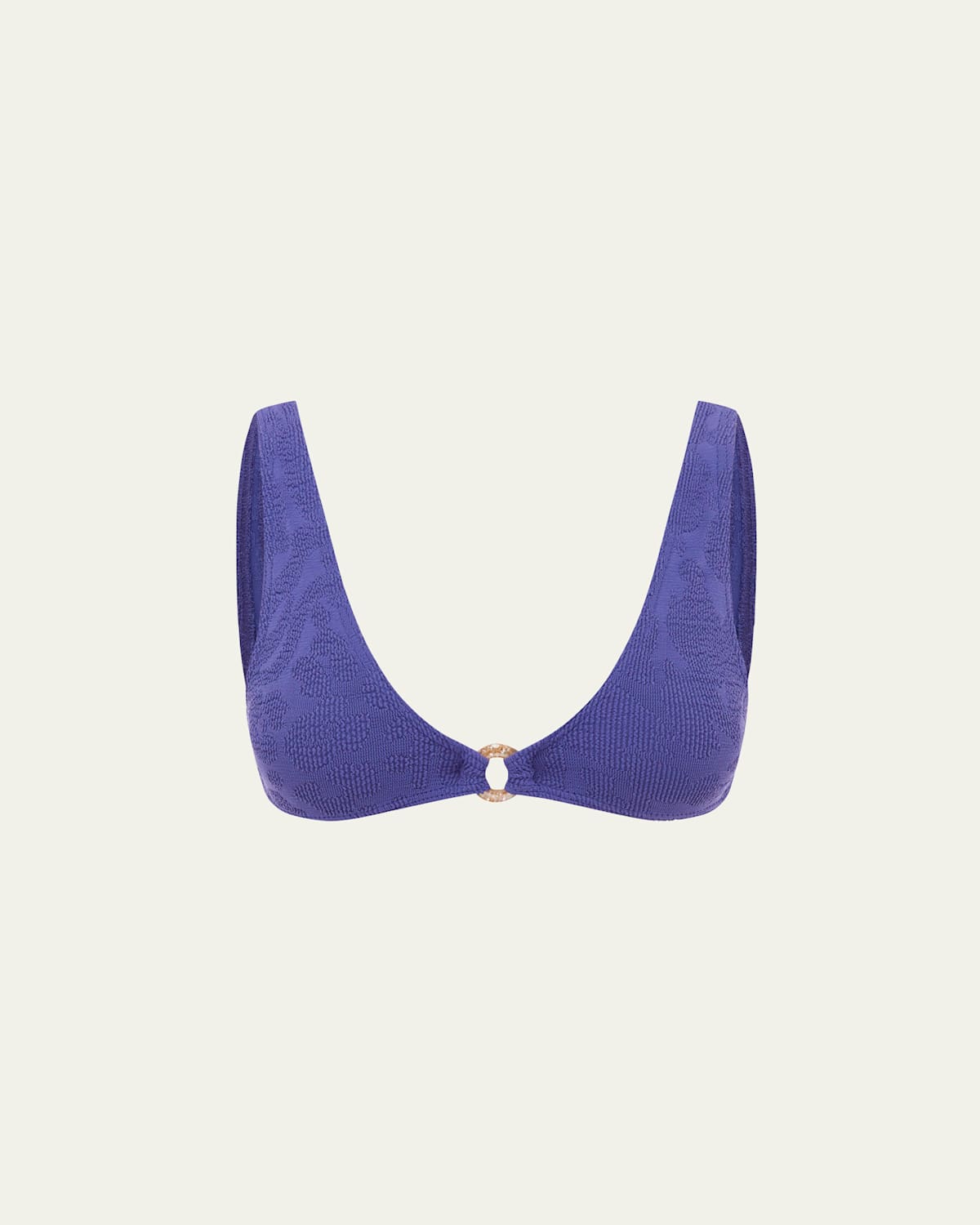 bondeye swim "Scout" bikini top in signature The Authentic Crinkle™ fabric with a central ring detail Classic scoop neckline Wide shoulder straps for support Medium to full support Low scooped back Pullover style One size fits most Nylon/polyamide/nylon/polyamide/Lycra® spandex Unlined Hand wash Made in Australia Bottoms sold separately