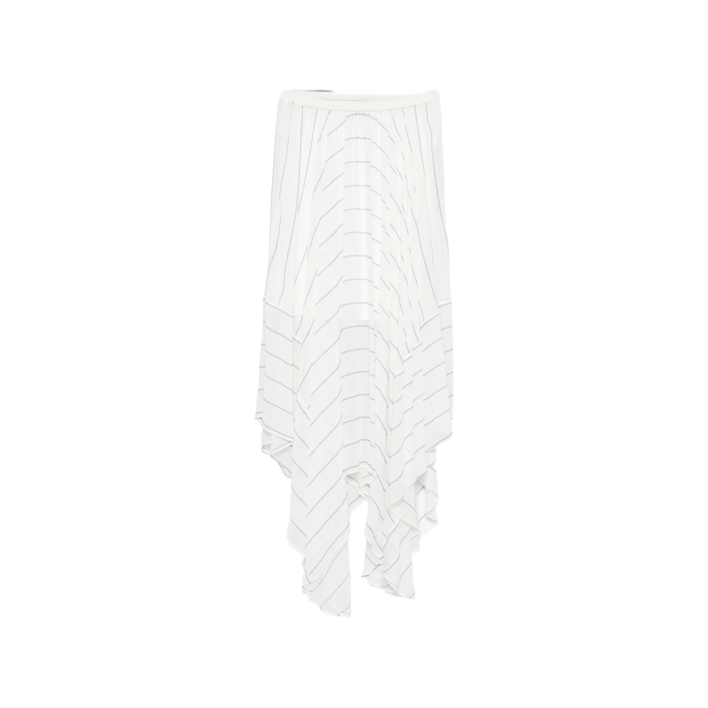white/blue striped elasticated waistband handkerchief hem tonal stitching asymmetric design