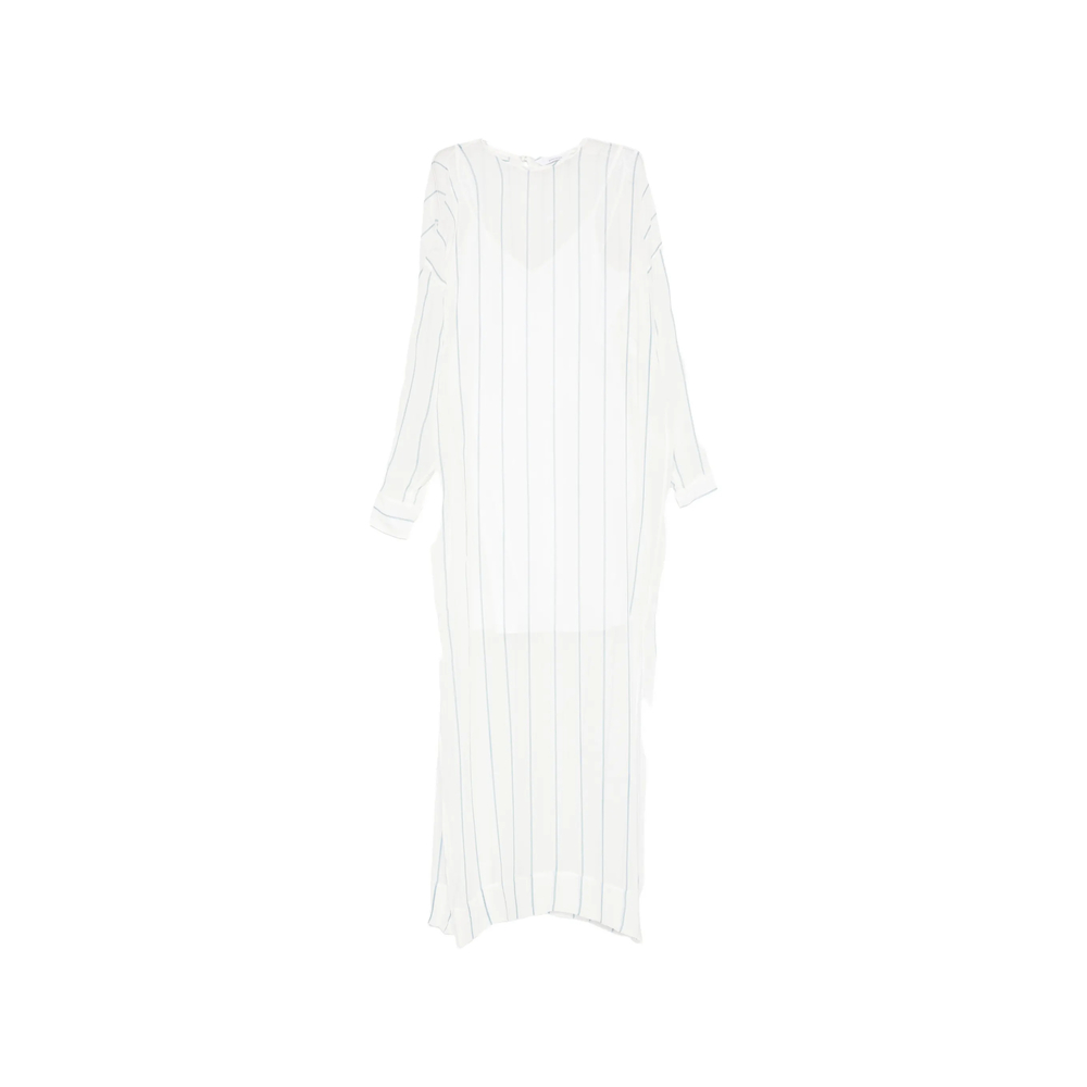 white vertical stripe pattern shift style crew neck long sleeves