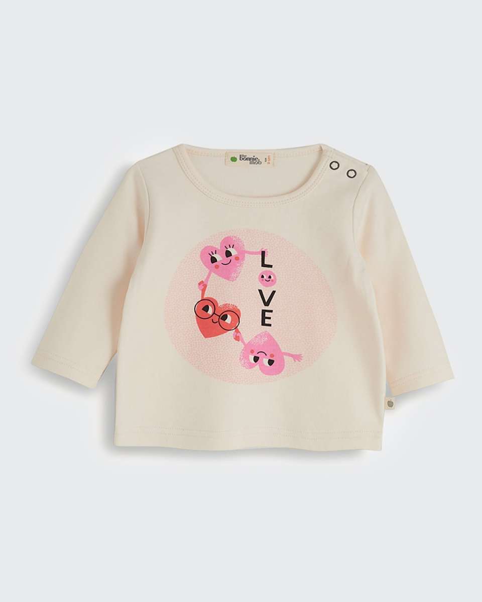 bonniemob "Culture" heart typographic Tshirt. Crew neckline; snaps through shoulders. Long sleeves. Relaxed fit. Pullover style. Organic cotton. Imported.
