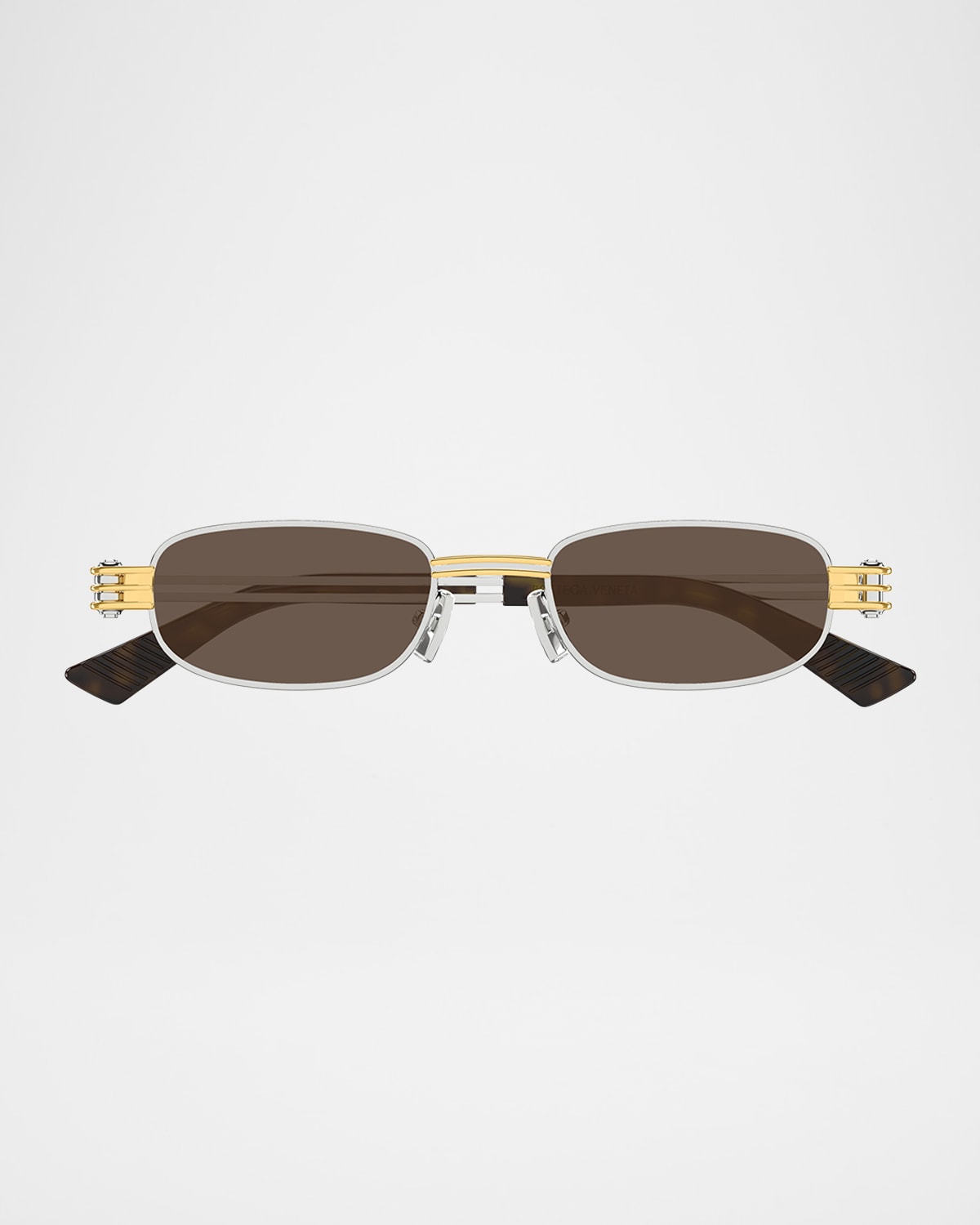 Bottega Veneta "BV1381S" rectangle sunglasses in metal Eye/bridge/temple (in mm): 5020145 Solid lenses Adjustable nose pads Logo engraving at temples Thin, tapered arms 100% UVA/UVB protection Made in Japan