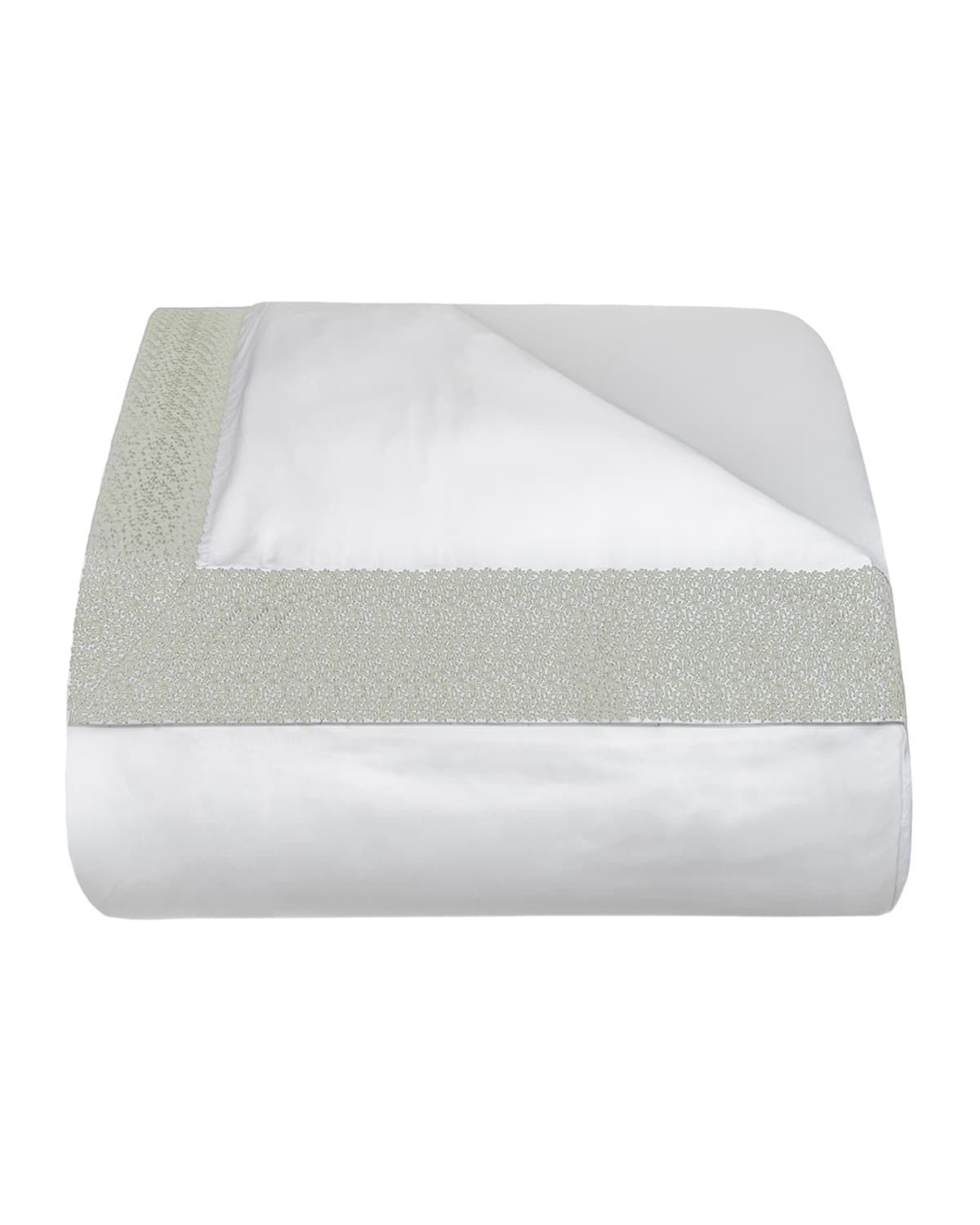 Embroidered queen duvet cover. 300 thread count cotton sateen. Approx. 90"Sq. For indoor use only. Machine wash. Made in Portugal.