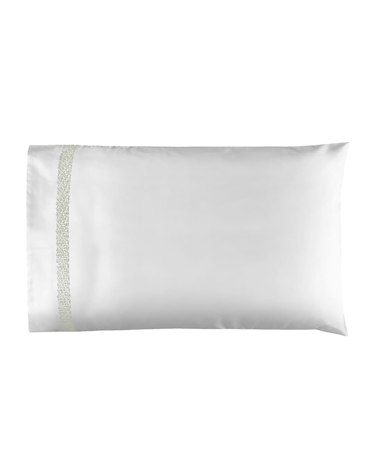 Set of two embroidered standard pillowcase. 300 thread count cotton sateen. Approx. 30"L x 20"W. For indoor use only. Machine wash. Made in Portugal.