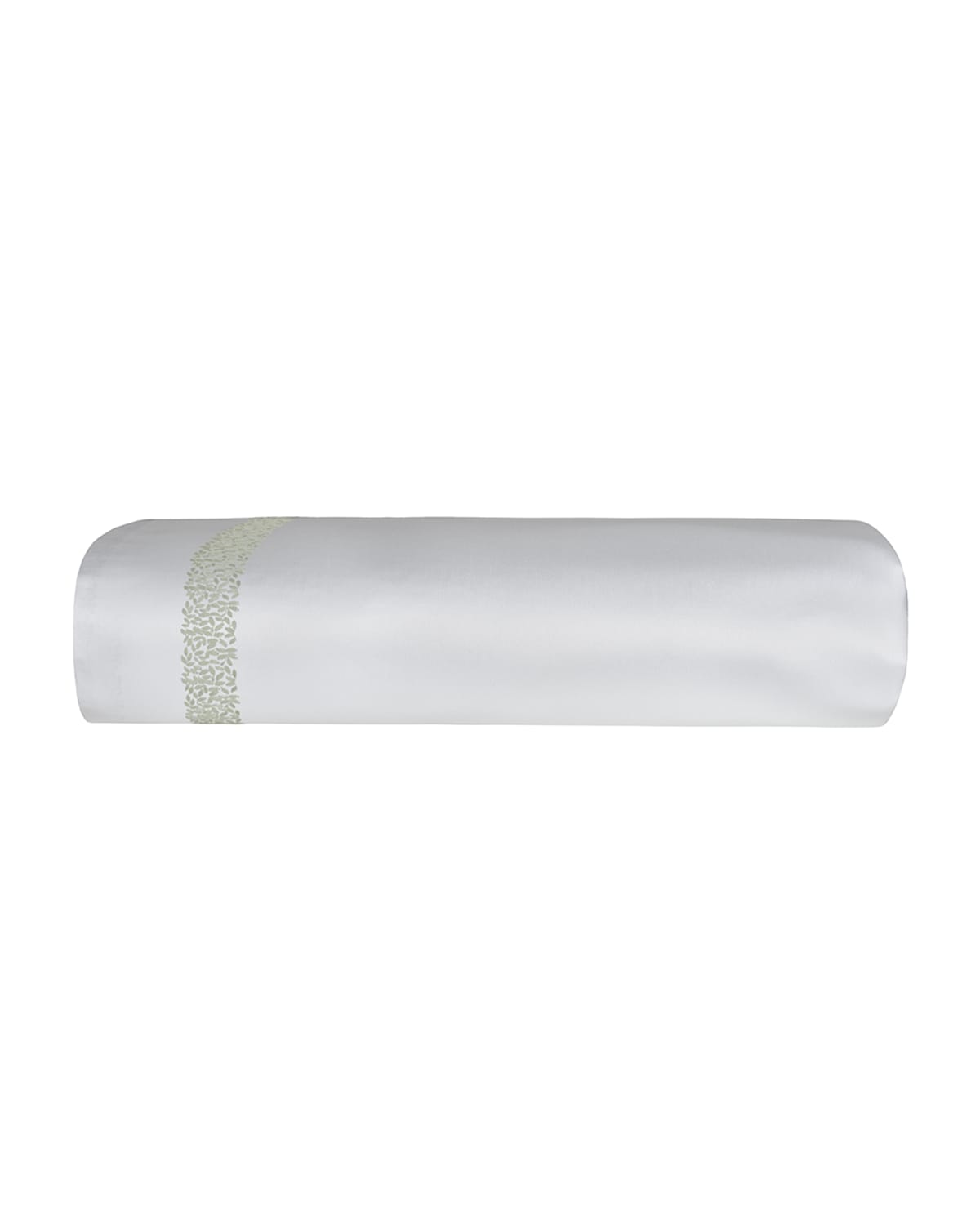 Embroidered king sheet set. 300 thread count cotton sateen. Approx. 115"Sq. For indoor use only. Machine wash. Made in Portugal.