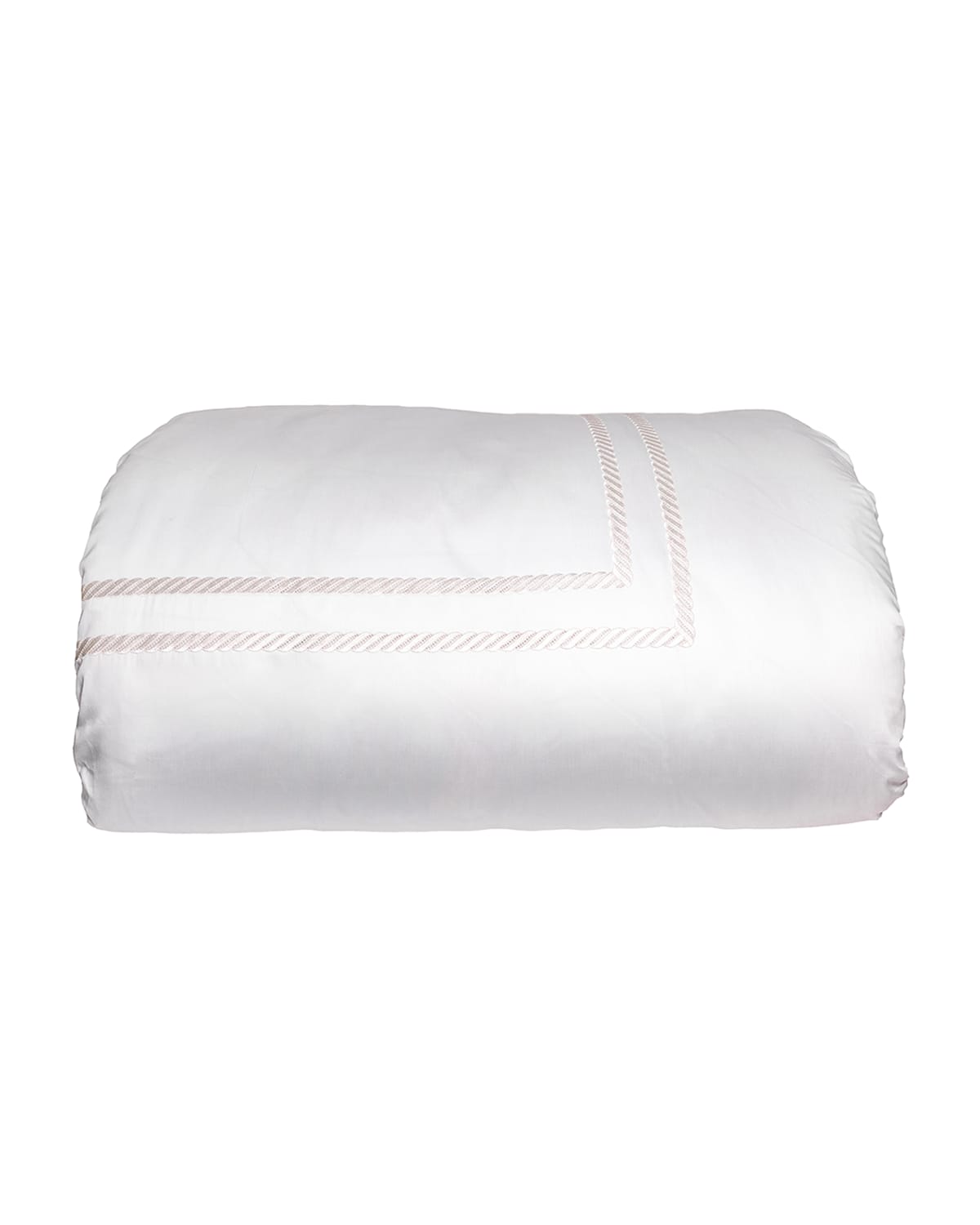 Embroidered king duvet cover. 500 thread count cotton sateen. Approx. 90"L x 105"W. For indoor use only. Machine wash. Made in Portugal.