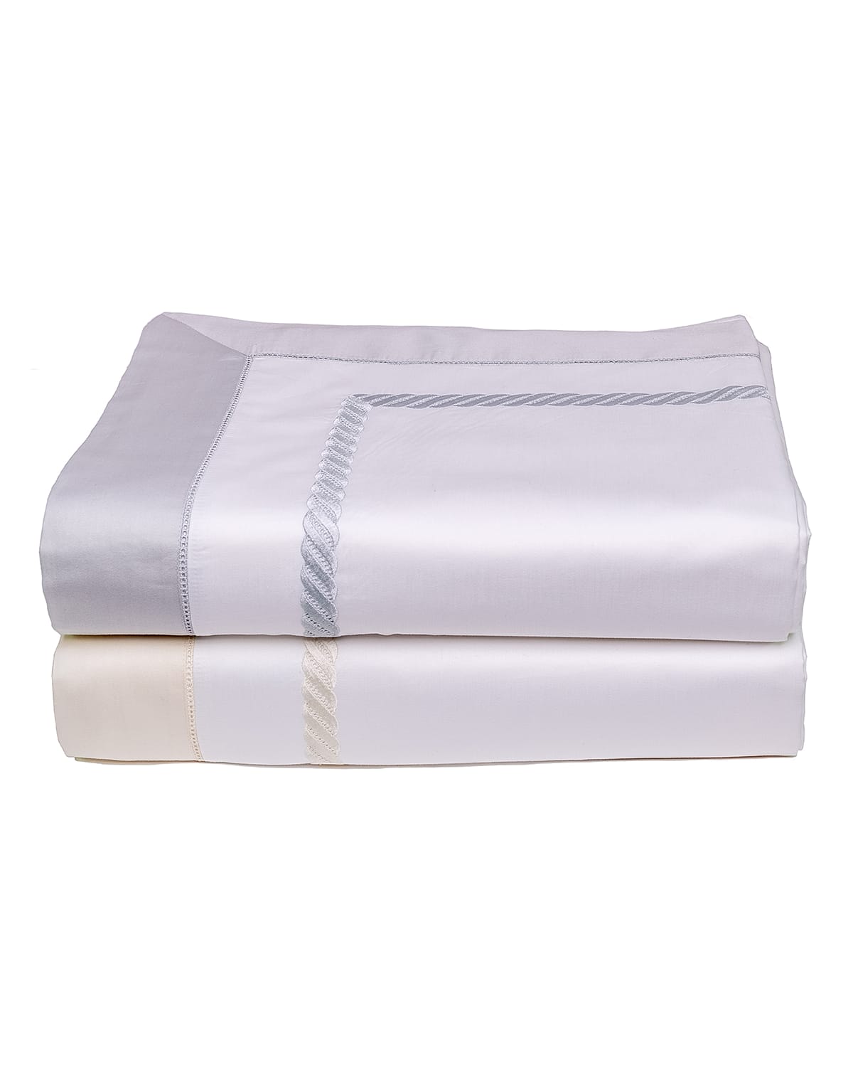 Embroidered twin sheet set. 500 thread count cotton sateen. Approx. 112"L x 75"W. For indoor use only. Machine wash. Made in Portugal.