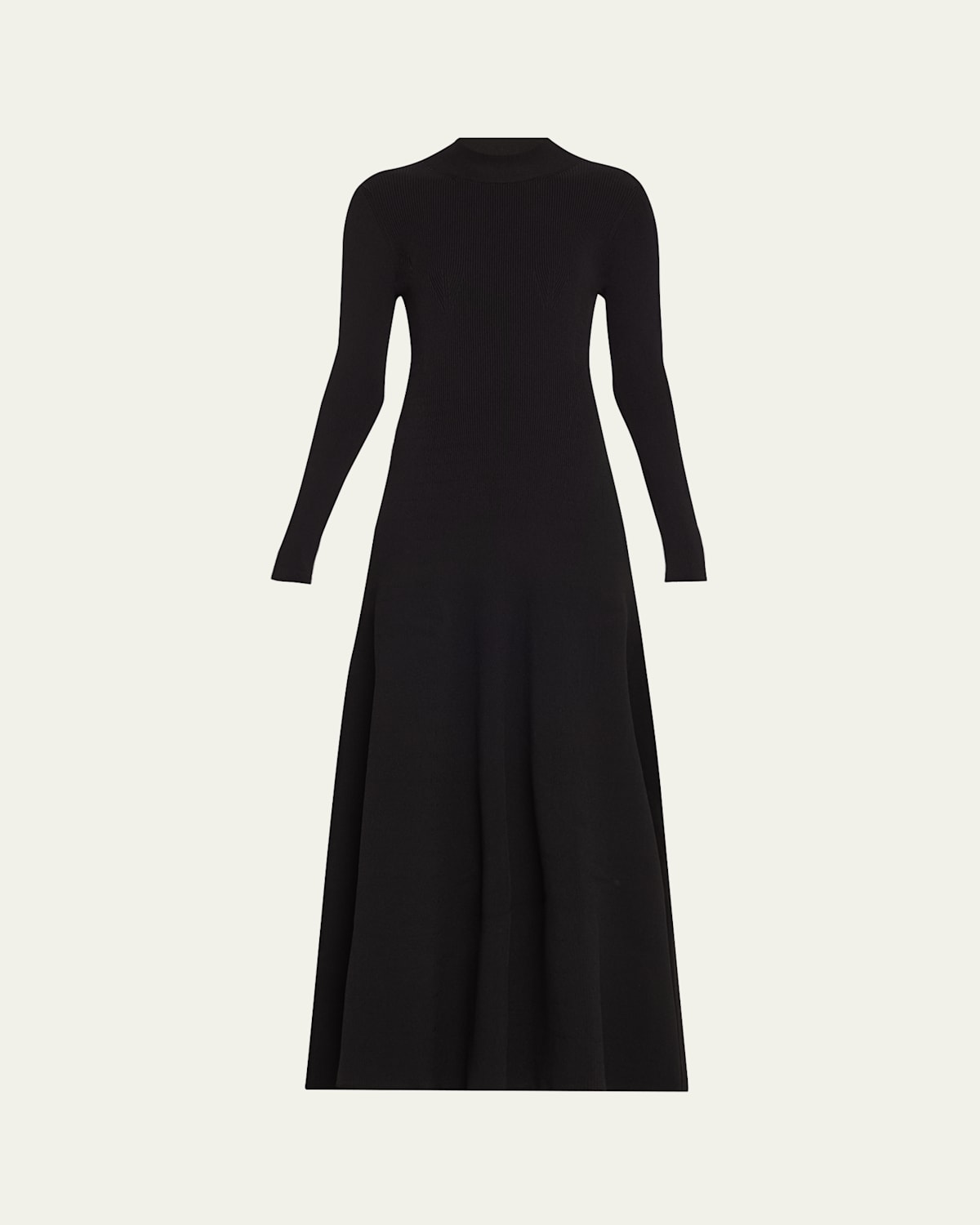 Vanessa Long-Sleeve Rib-Knit A-Line Maxi Dress