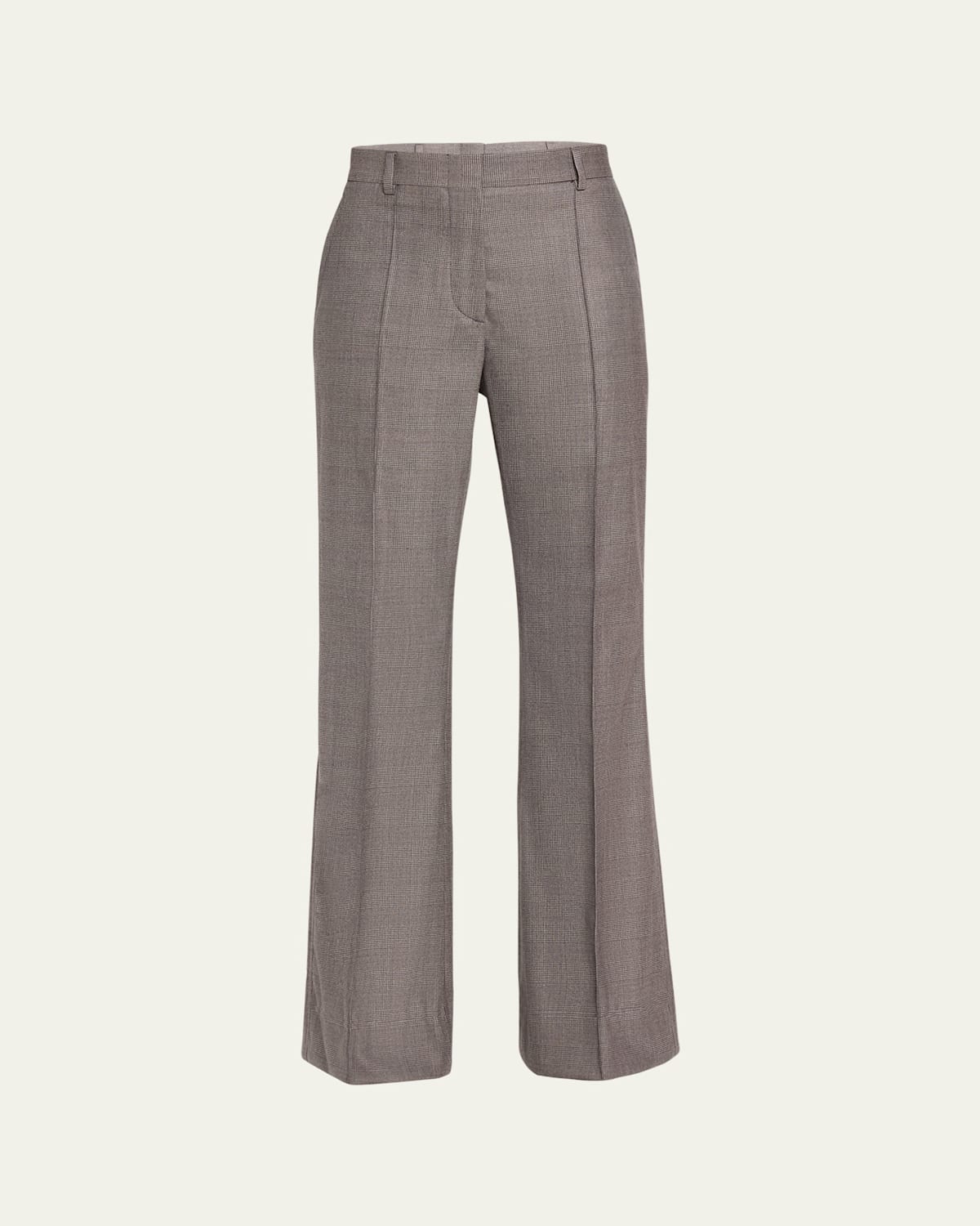 Brioni trousers in Prince of Wales motif Full length High rise Flare legs Side slip pockets; back buttoned pockets Tab/zip fly; belt loops Wool Made in Italy