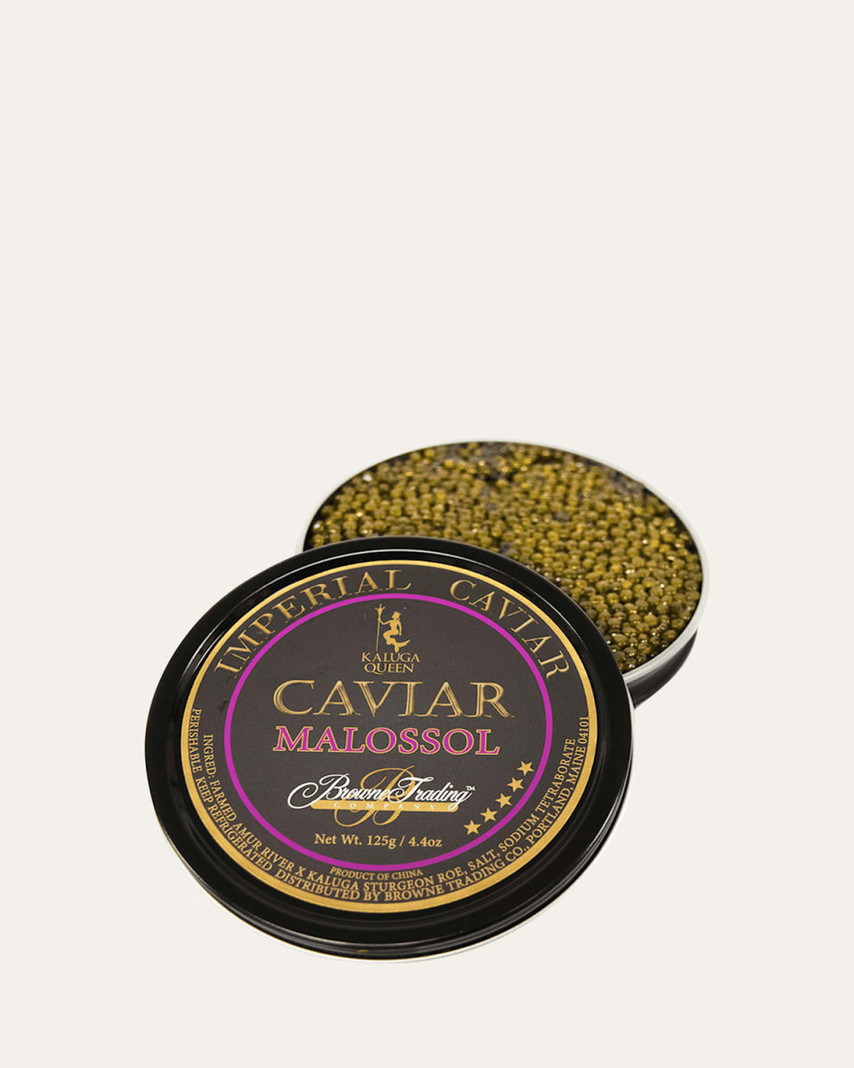 Imported caviar from 10,000 Great Lake region of China. This gold caviar's firm pearls will melt in your mouth with a fullbodied, creamy flavor and pleasing, clean finish Species: kaluga hybrid sturgeon Color: amber to golden Taste: nutty, creamy Size of pearls: medium Texture: firm Total net weight: 1.7 oz Imported