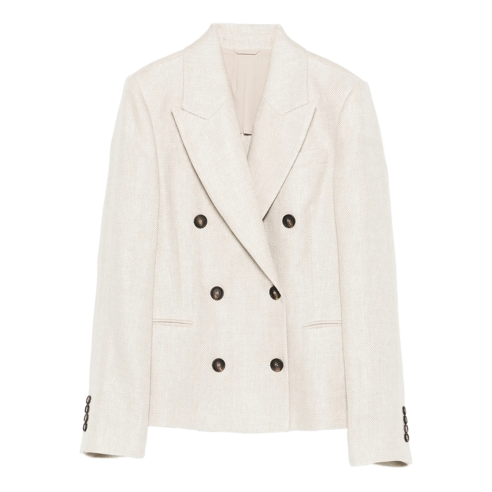 beige herringbone pattern double-breasted button fastening notched lapels buttoned cuffs