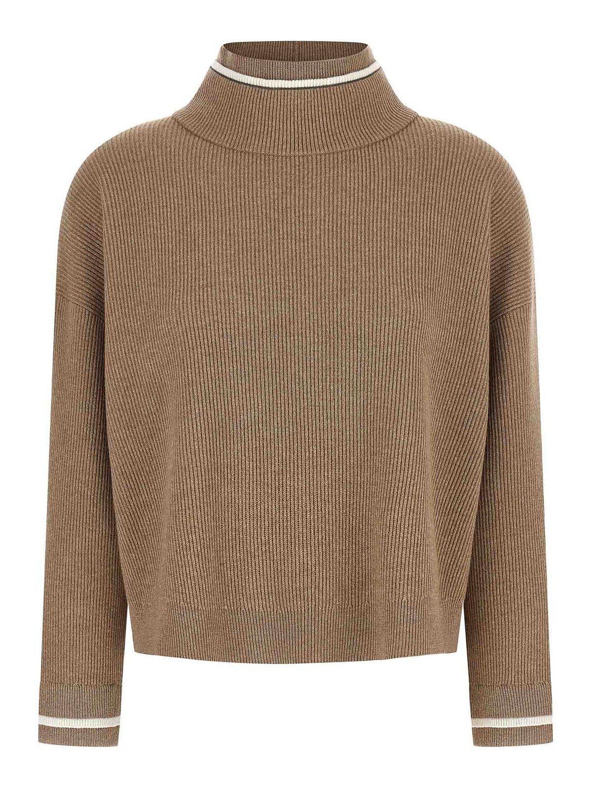 Pull anglais côtelé et mélangé à col haut à double épaisseur, à manches longues moniles avec poignets à double épaisseur et épaules tombantes