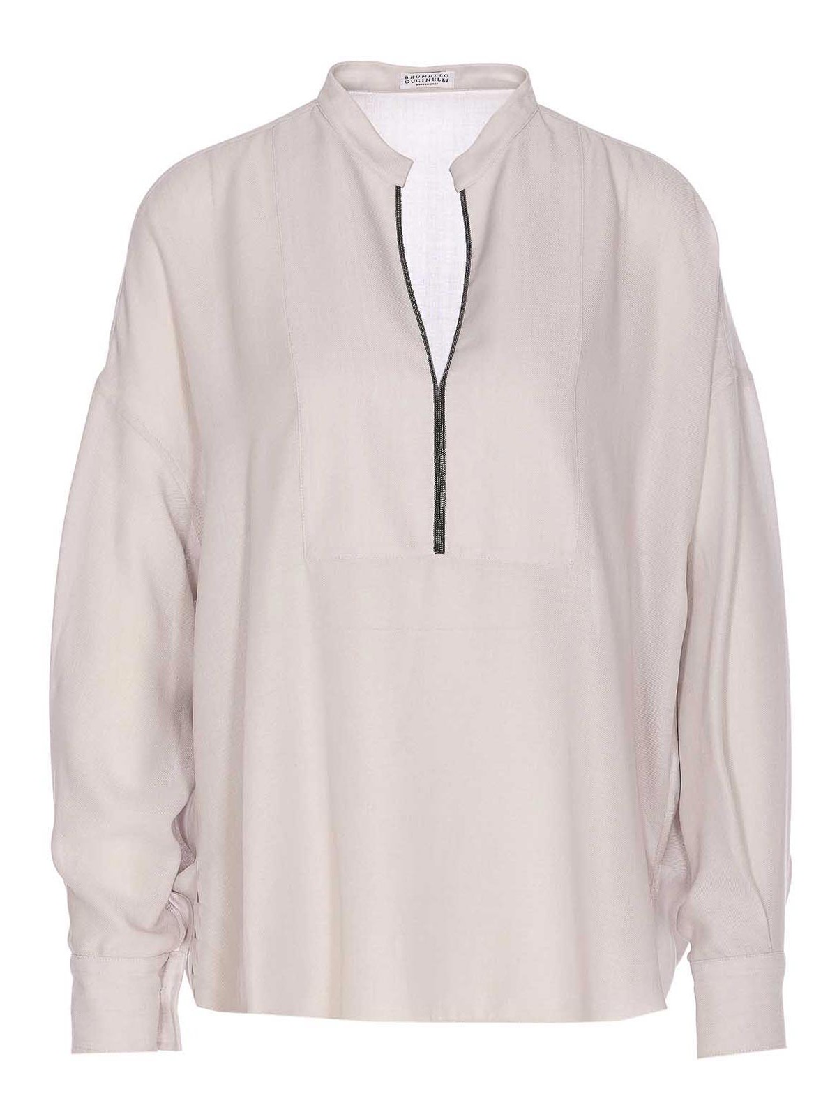 Chemise gris clair Brunello Cucinelli Logo Monile sur les manches longues, boutons sur les poignets, encolure en V Nom de la couleur du créateur: gris