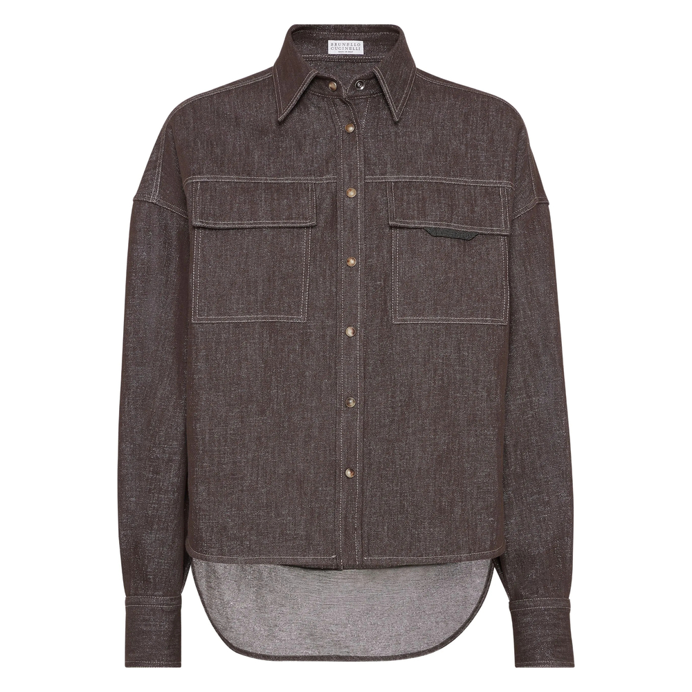 chocolate brown front press-stud fastening two chest flap pockets classic collar long sleeves