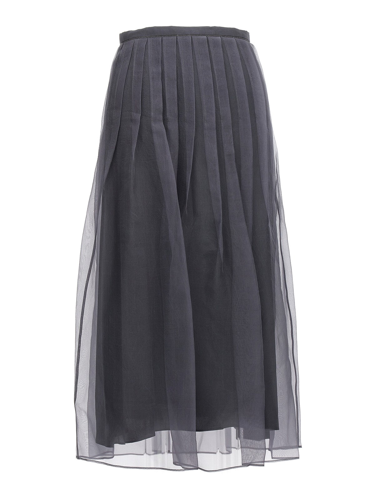 Jupe plissée en soie avec fermeture éclair latérale et détail monile