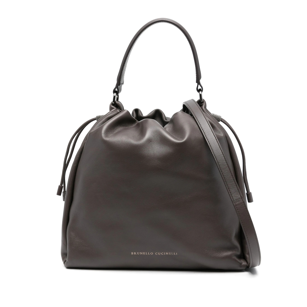 grey calf leather smooth grain debossed logo to the front signature Monili chain detail drawstring fastening single top handle adjustable detachable shoulder strap main compartment internal zip-fastening pocket debossed internal logo suede lining silver-tone hardware This piece comes complete with a protective dust bag.