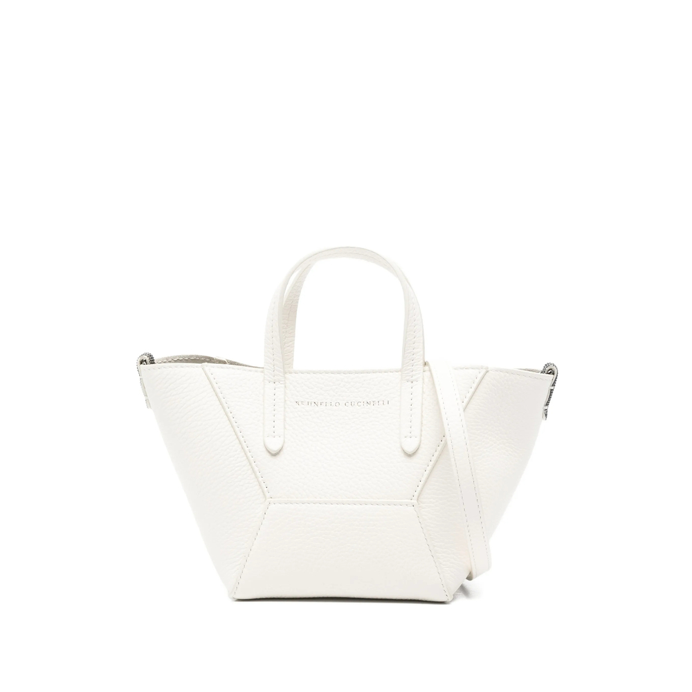 white top handles detachable shoulder strap grain texture internal card slots This piece comes complete with a protective dust bag.