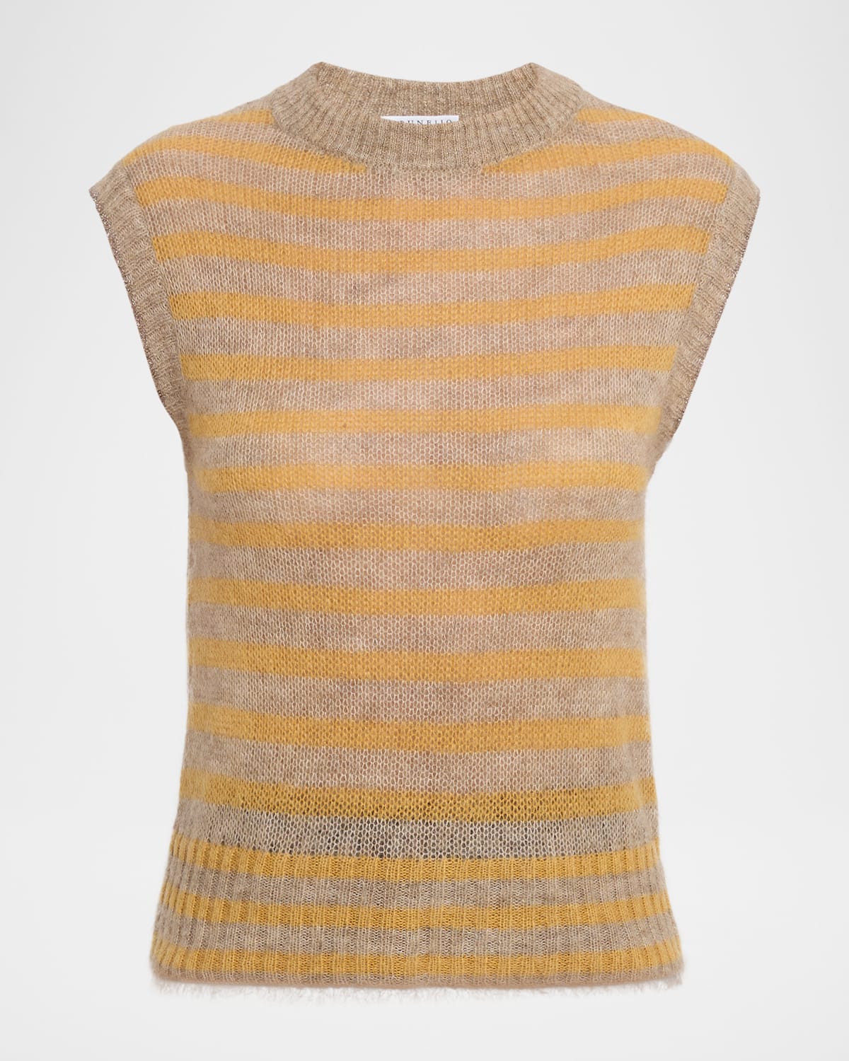 A lightweight expression of texture and pattern, this Brunello Cucinelli sweater is crafted in airy mohair with refined stripes, offering an elegant balance of softness and modern ease. Crew neckline Sleeveless Slim fit Ribbed hem Pullover style Mohair/nylon/polyamide/wool Made in Italy