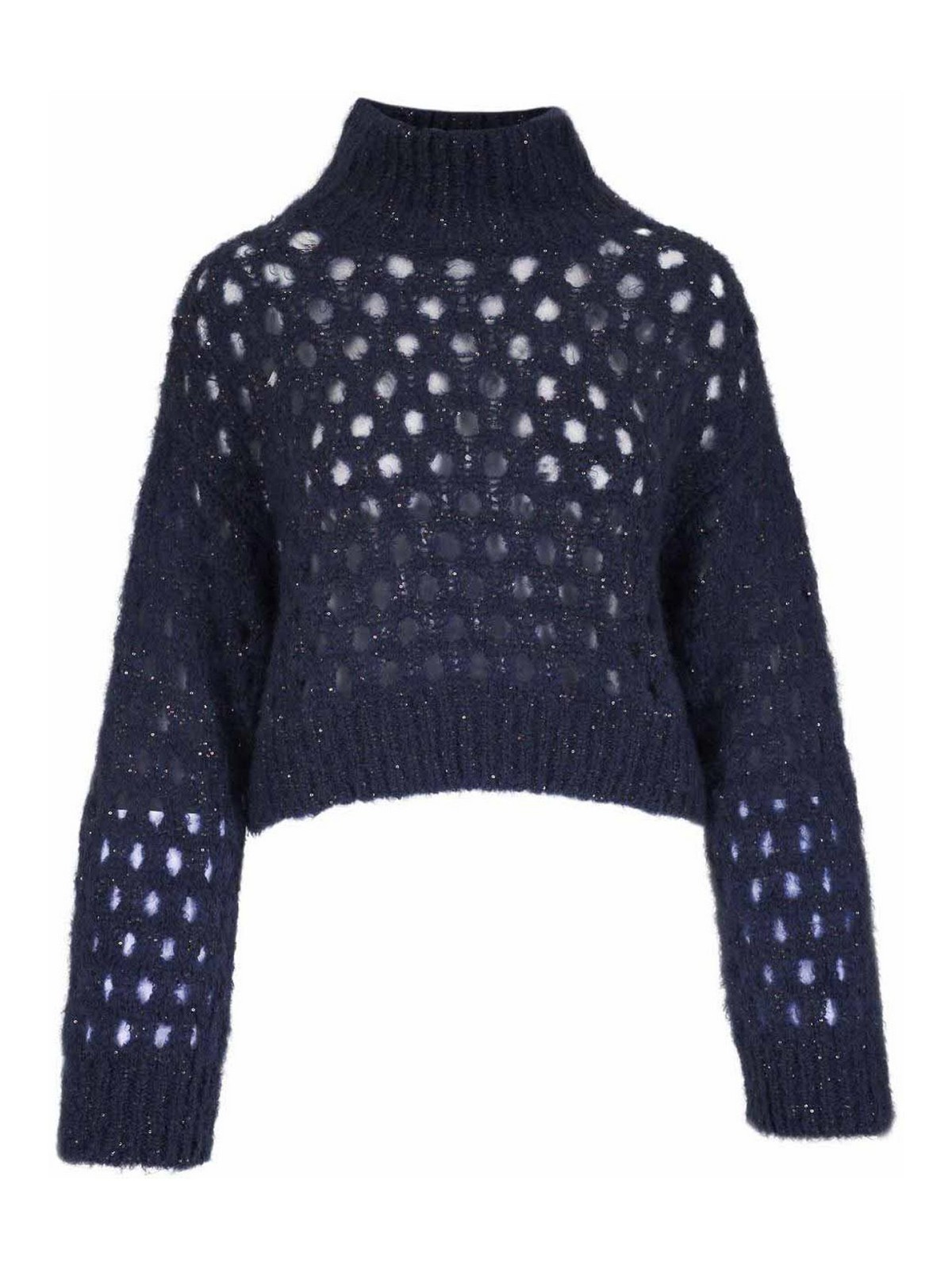 Col de nuit bleu, col haut avec manches longues à points ouverts