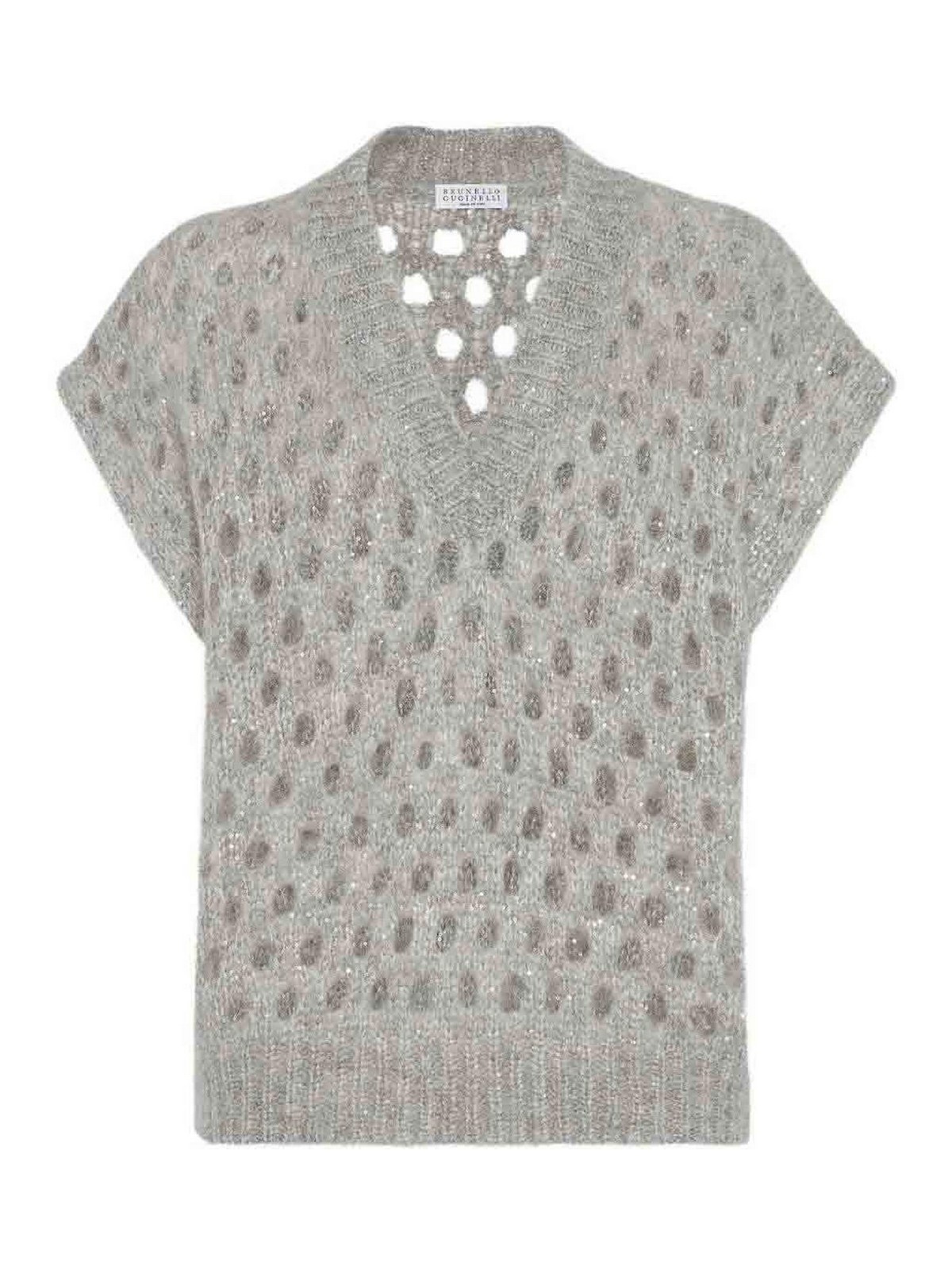 Encolure en V gris clair à point ouvert sans manches avec bord côtelé