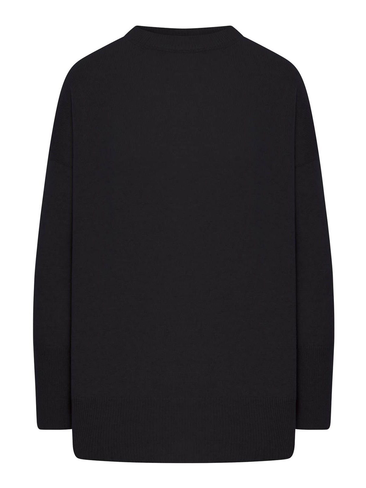 Col rond, raglan, ourlet long côtelé en S, poignets et col, surdimensionné, couleur noire