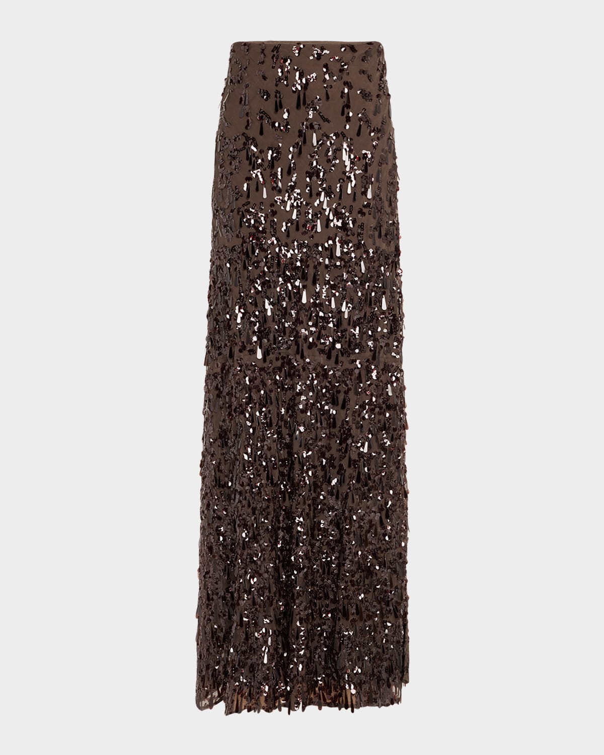 Sequined Crispy Silk Chiffon Maxi Skirt
