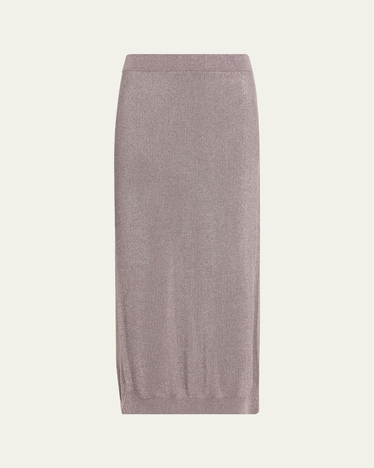 Brunello Cucinelli skirt in a sparkling ribbed knit High waist Skirt falls straight from hip to hem Full length Pullon style Cotton/viscose/metallic fibers Dry clean Made in Italy