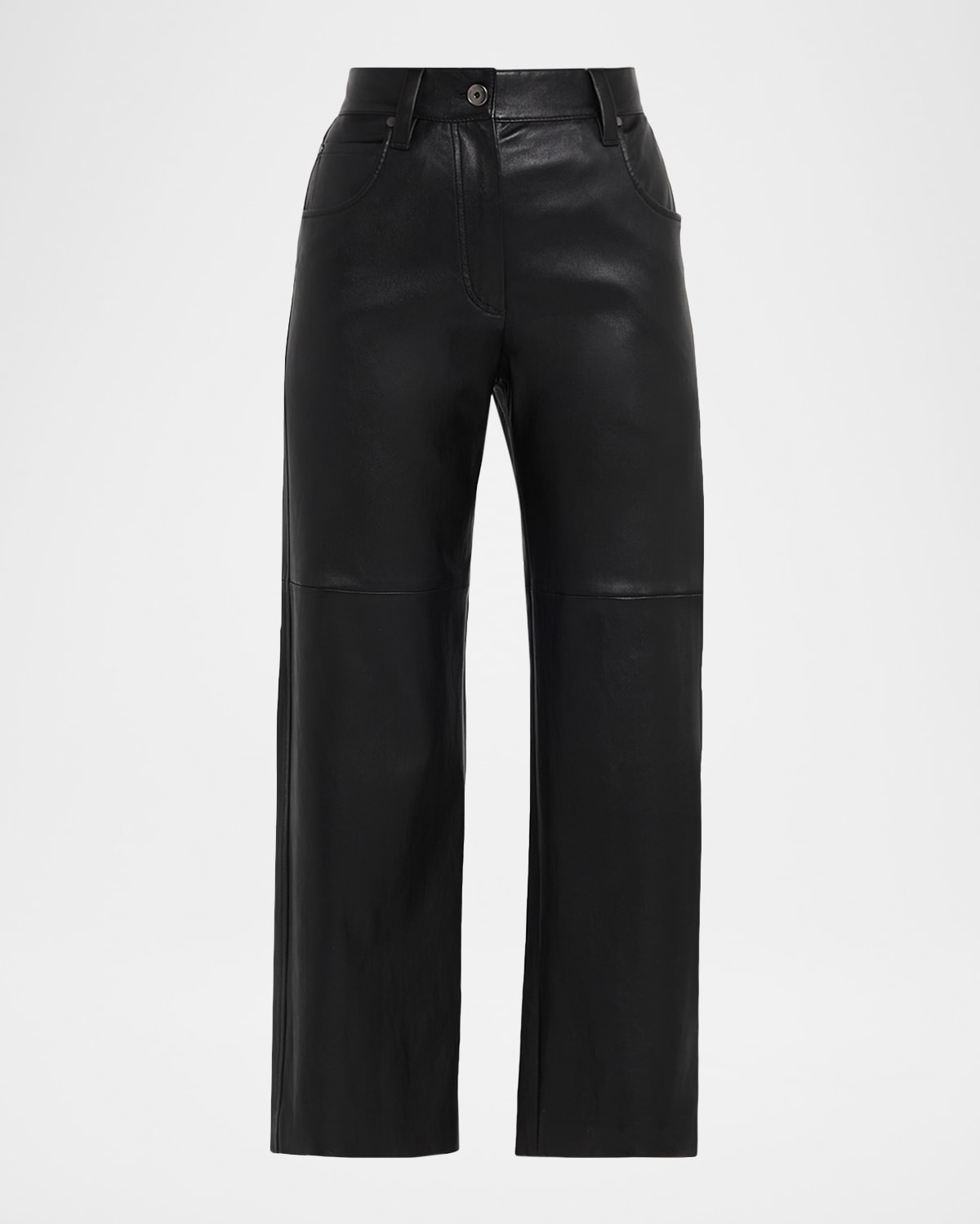 These Brunello Cucinelli leather pants add an elevated finish to any outfit, with a paneled construction and flattering straightleg figure Midrise sits high on the hip Flat front Fivepocket style Cropped at the ankle Straight legs Button/zip fly; belt loops Leather Made in Italy