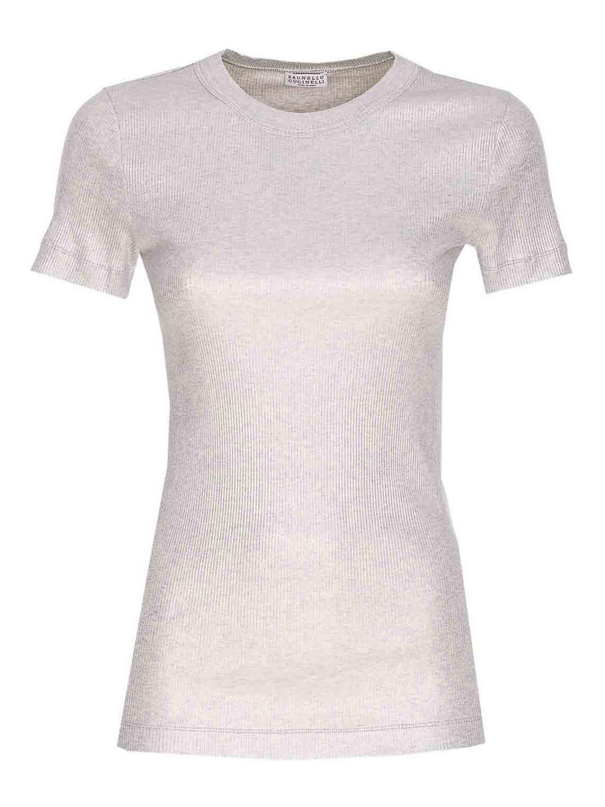 T-shirt Brunello Cucinelli à col rond, modèle métallisé, logo Monile au dos Nom de la couleur du créateur: argent