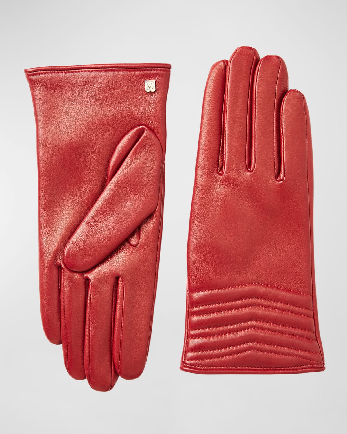 Bruno Magli chevron quilt gloves in Nappa leather Approx. 7.5"L x 3.5"W Tonal stitching Lining: Cashmere Leather method dry cleaning Imported