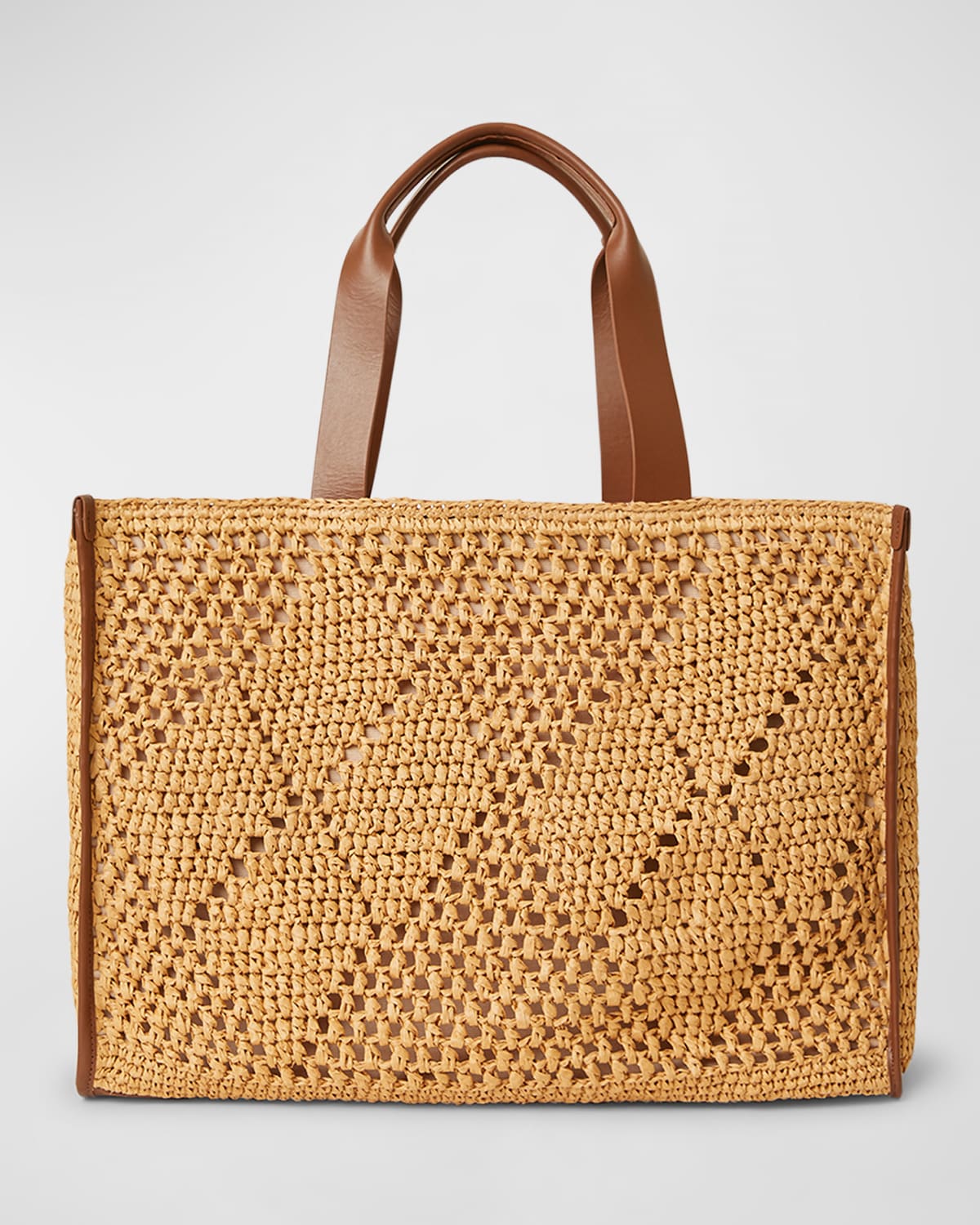BTB Los Angeles "Lenox" tote bag in straw Top handles Open top Approx. 12"H x 17.5"W x 6"D Imported