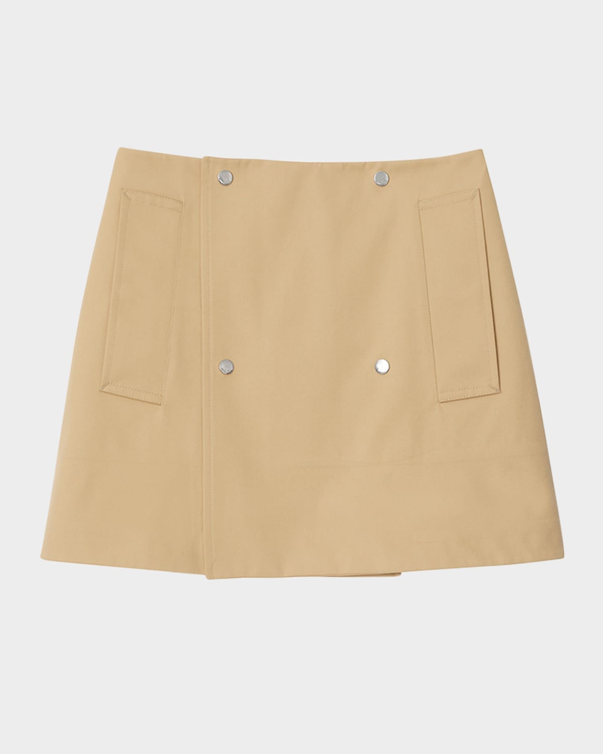 Burberry skirt featuring a double breasted front High waist Hip welt pockets Mini length Aline silhouette Snapbutton front Nylon/polyamide/cotton Made in Italy