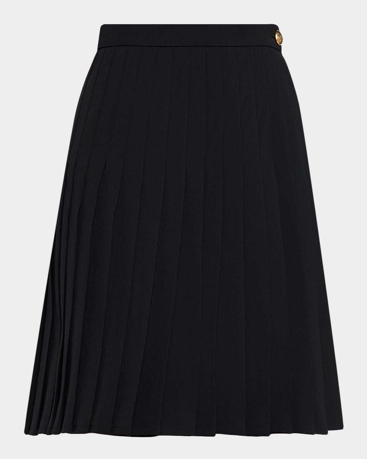 Burberry "Eleonora" skirt is finished with pleating and a signature EKD engraved goldtone button High waist Knee length Button side waist closure Polyester/wool/horn Lining: Viscose Made in Poland