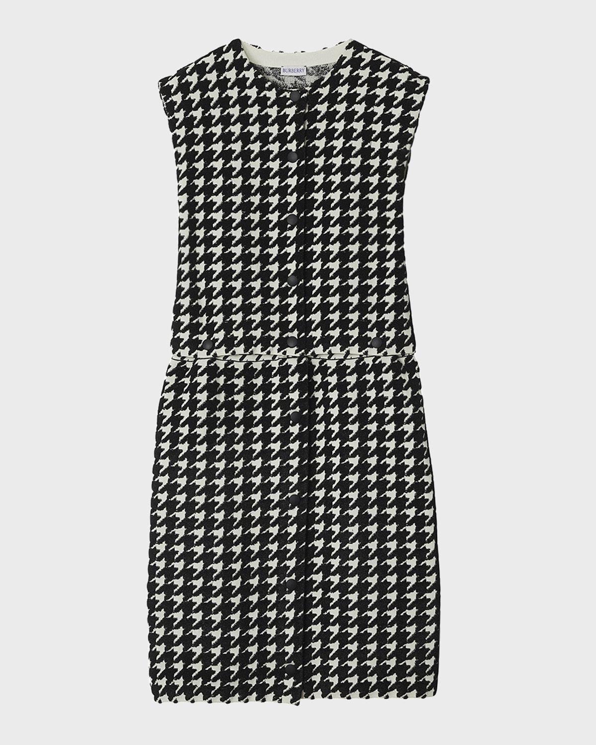 Burberry dress featuring houndstooth intarsia Round neckline; snap front Sleeveless Sheath silhouette Knee length Polyester/viscose/nylon/polyamide Made in Italy
