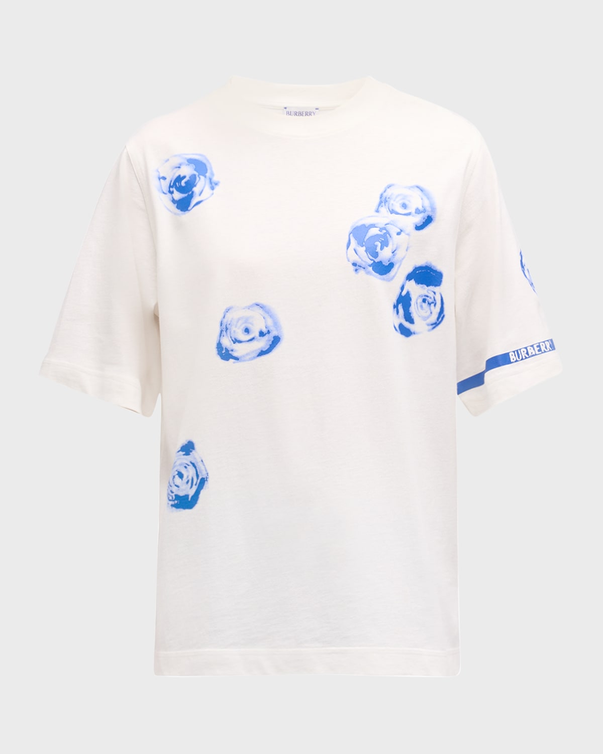 Rose-Print Logo-Stripe Short-Sleeve T-Shirt