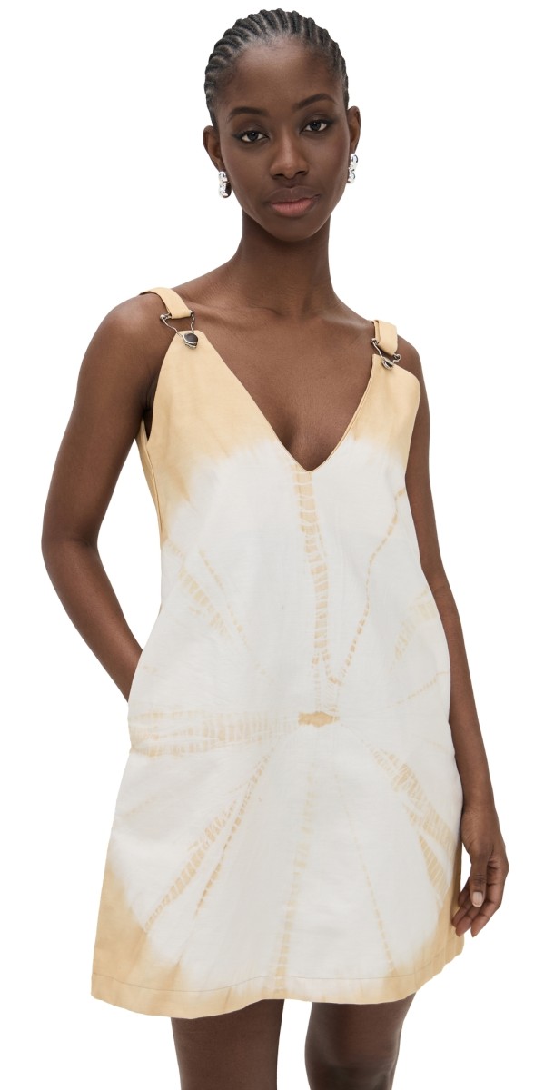Fabric: Mid-weight, non-stretch twill. Mini length. V neck and back. Adjustable shoulder straps. On-seam side pockets. Shell: 100% cotton. Partially lined. Dry clean. Imported, Nigeria. Measurements: Measurements from size XS Length: 33.75in / 86.0cm, from shoulder