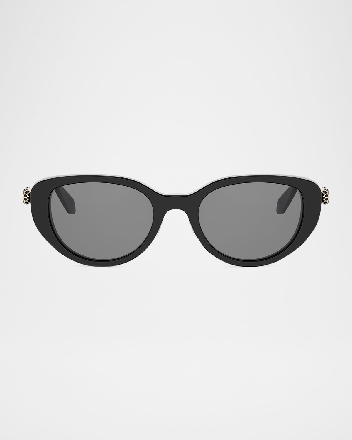 BVLGARI "Serpenti Forever" oval sunglasses embellished with snakehead accents near the hinges Eye/bridge/temple (in mm): 5220140 Monochromatic lenses Saddle nose bridge Lasered logo on metal temples Thin, tapered arms 100% UVA/UVB protection Acetate Hand wash Made in Italy