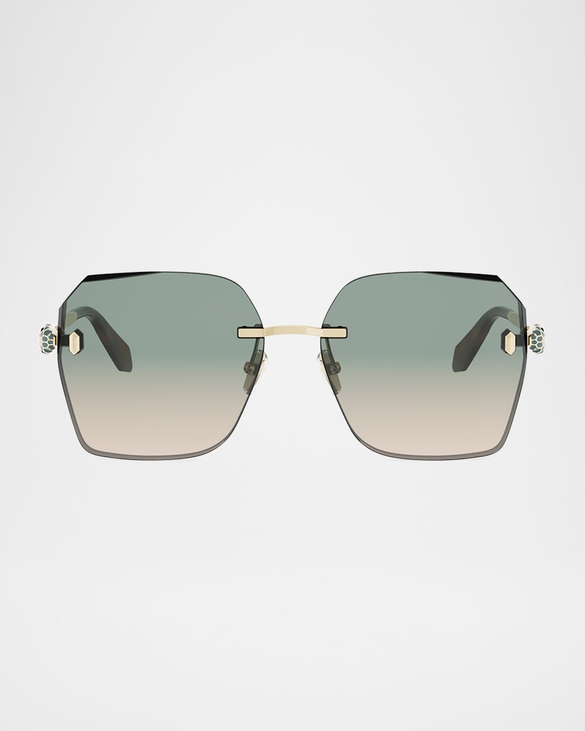 BVLGARI "Serpenti Forever" square rimless metal sunglasses framed by enamelled snakehead accents on the hinges Eye/bridge/temple (in mm): 5815140 Gradient lenses Adjustable nose pads Lasered logo on metal temples and on the lens Thin, tapered arms 100% UVA/UVB protection Metal Hand wash Made in Italy