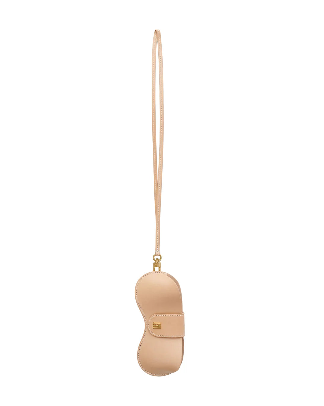 The Aya Sunny Sunglasses Leather Case in Tan by By Malene Birger is a hands-free sunglasses case featuring a magnetic flap closure, leather strap, and monogram emblem. 100% Cow Leather Clean with damp cloth #101995
