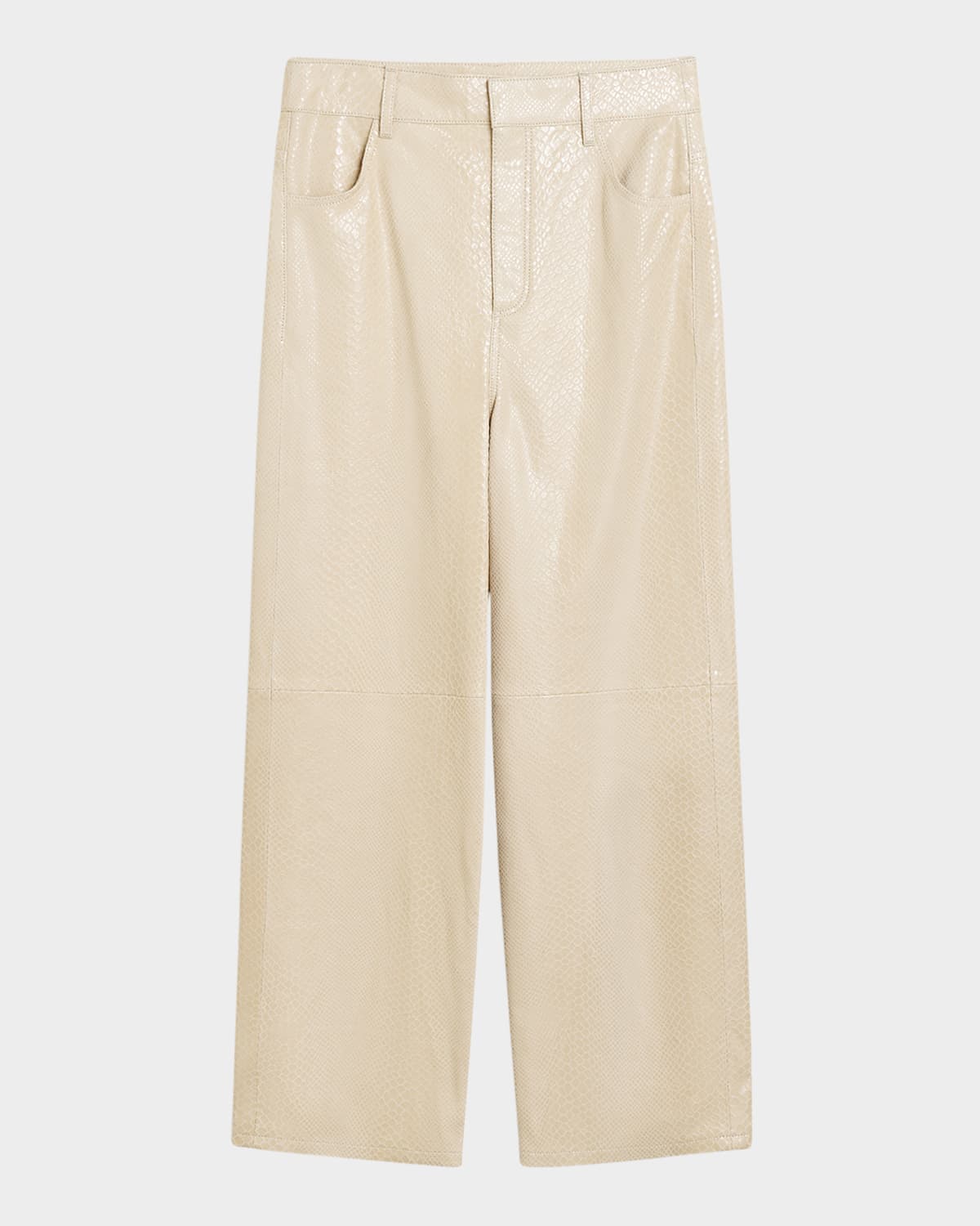 By Malene Birger "Cailys" crocodileembossed lambskin leather trousers in a jeanslike silhouette High rise Fourpocket style Full length Straight legs Hook and button/zip fly; belt loops Leather Leather method dry cleaning Imported
