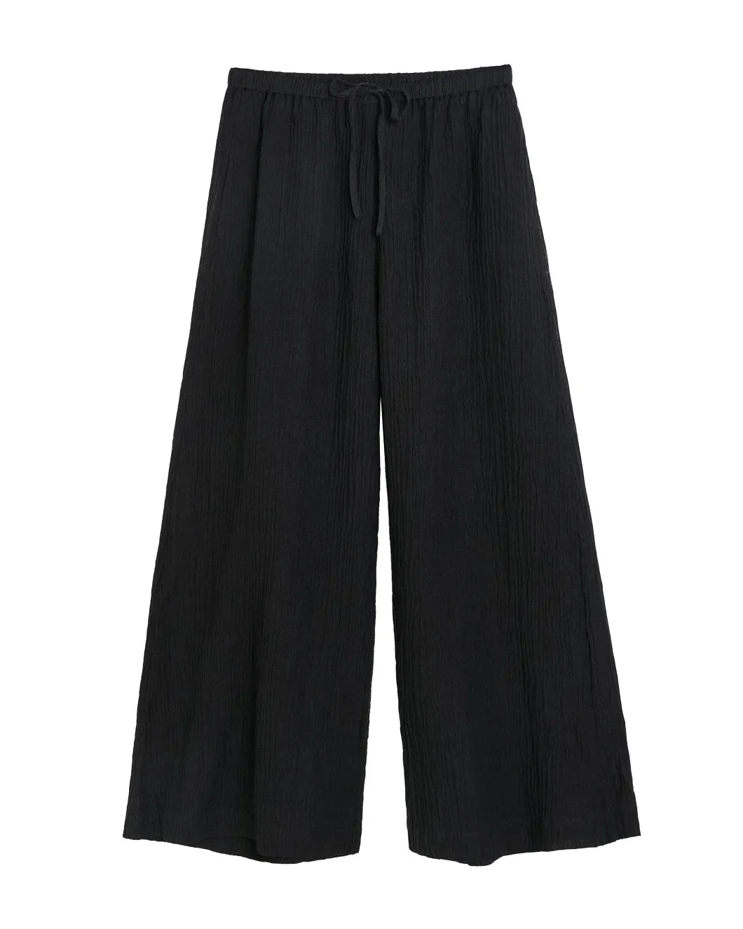 FINAL SALE The Clorella Wide-Leg Trousers in Black by By Malene Birger are wide-leg, partially lined trousers featuring an elastic waistband with adjustable drawstrings. Loose fit 58% Ramie, 42% Cotton Model is wearing a size 36 Side pockets #103366