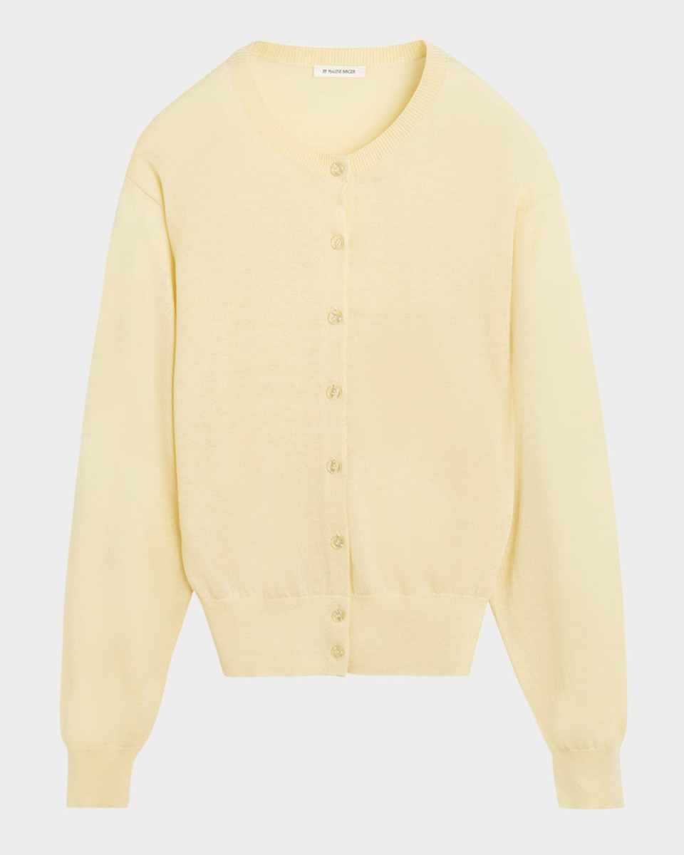 By Malene Birger "Montie" knit cardigan Approx. 22"L from shoulders to hem Crew neckline; button front Long sleeves; approx. 23"L Ribbed cuffs and hem Relaxed fit Tencel™ lyocell/wool/silk Hand wash or dry clean Imported
